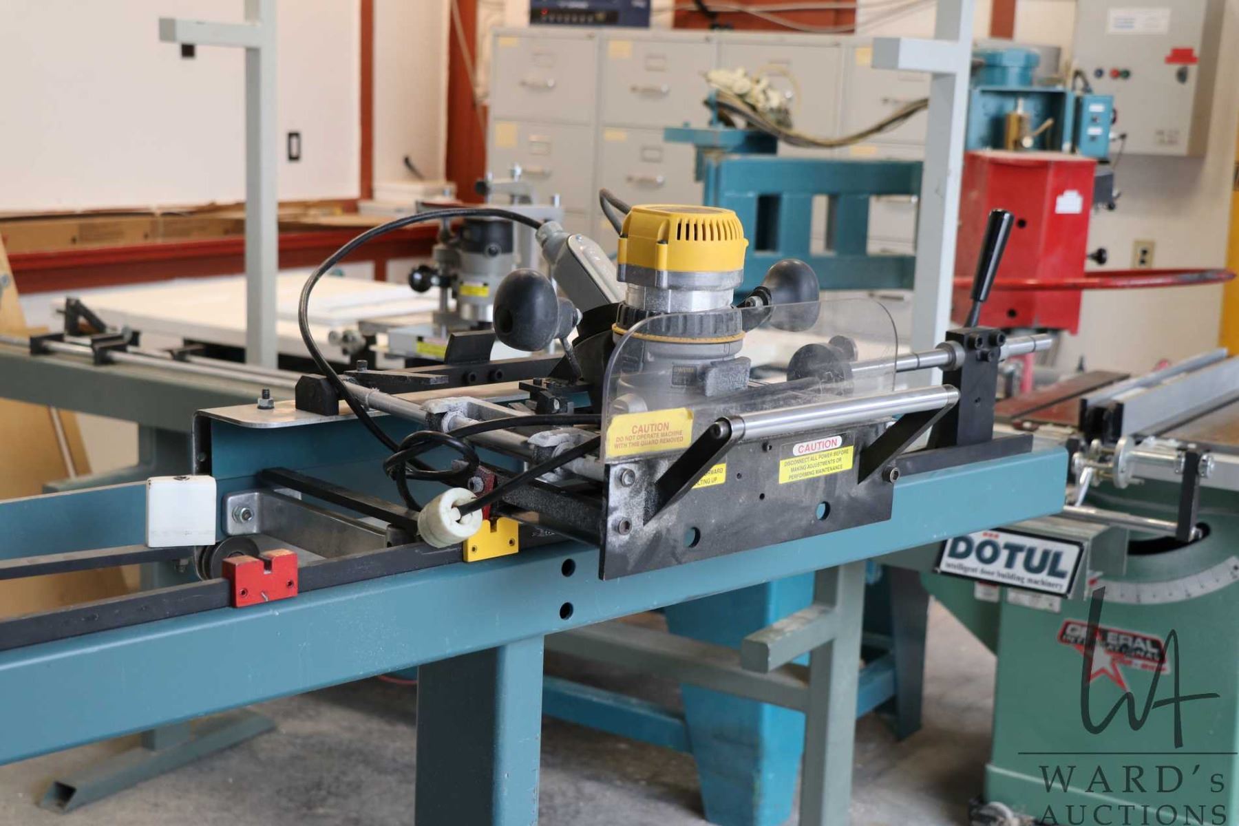 Norfield 250H strike jam router, fitted w/ DW616, 1 3/4HP router, overall dimensions of 106"L x 67 1