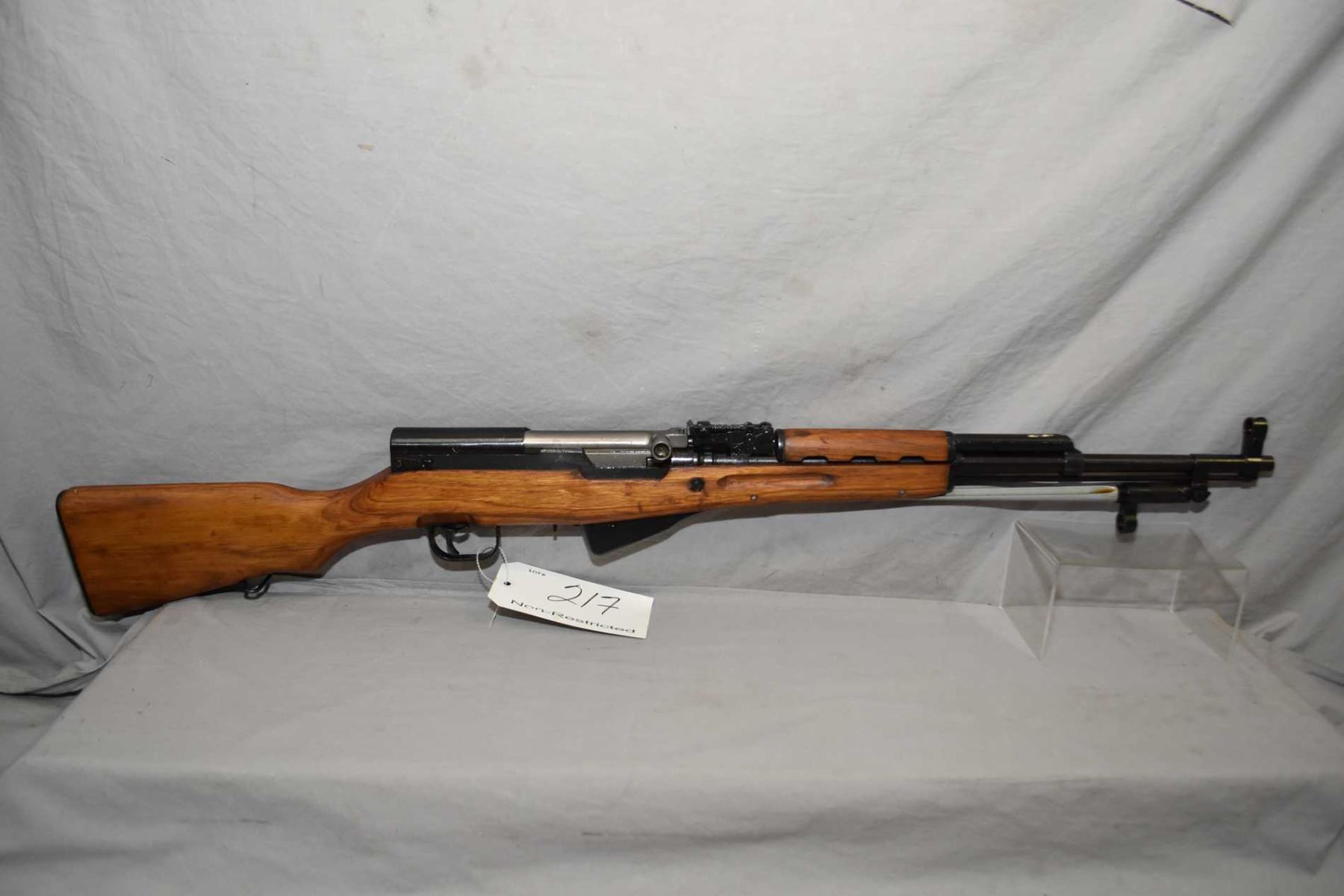 Norinco Model SKS Type 56 7.62 x 39 Cal Full Wood Military Rifle w/ 20" bbl [ blued finish, barrel sights, wooden stock w/ folding bayonet & cleaning rod, with original instruction booklet, oil bottle, appears new unfired in original box w/ matching numbered bolt , still in original grease ] Ser # 12151734
