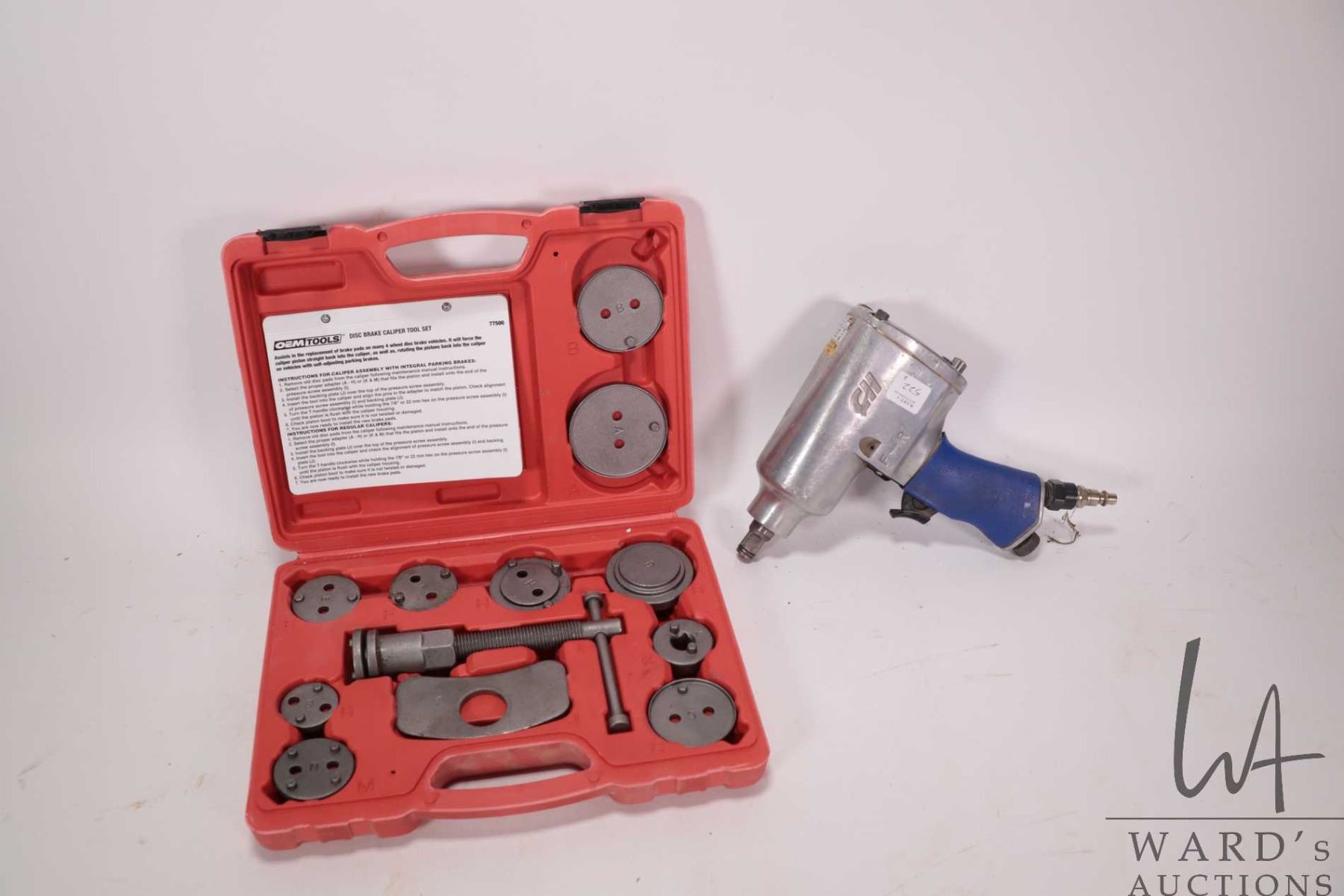 OEM Tools disc brake caliper tool set no. 77500 and a CH model XG0715 half inch drive pneumatic impact, working at time of cataloguing