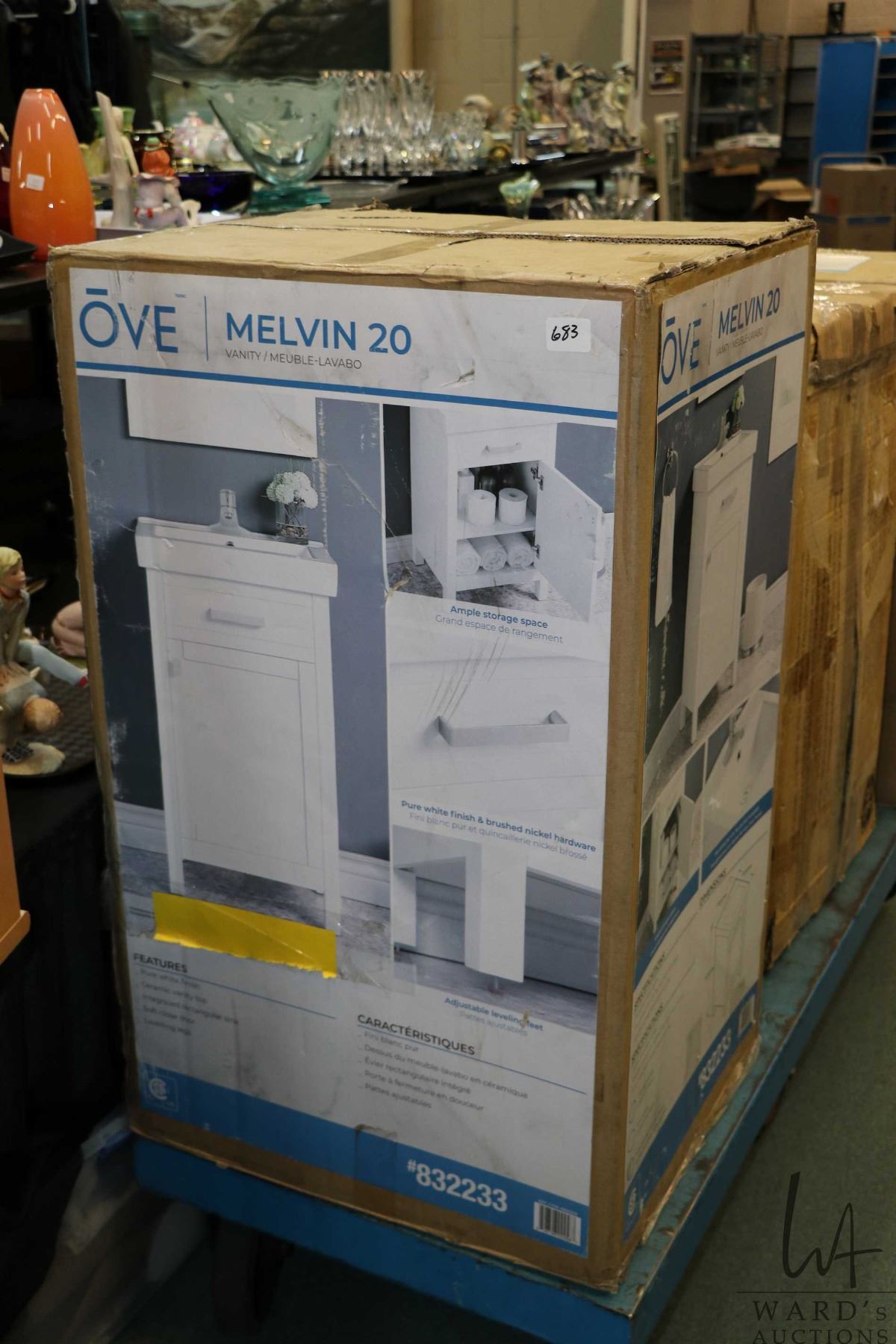 OVE Melvin 20 vanity with sink, 34" H X 20 1/4" W X 16 1/*" D, model 832233, appears new in box, although box has storage damage