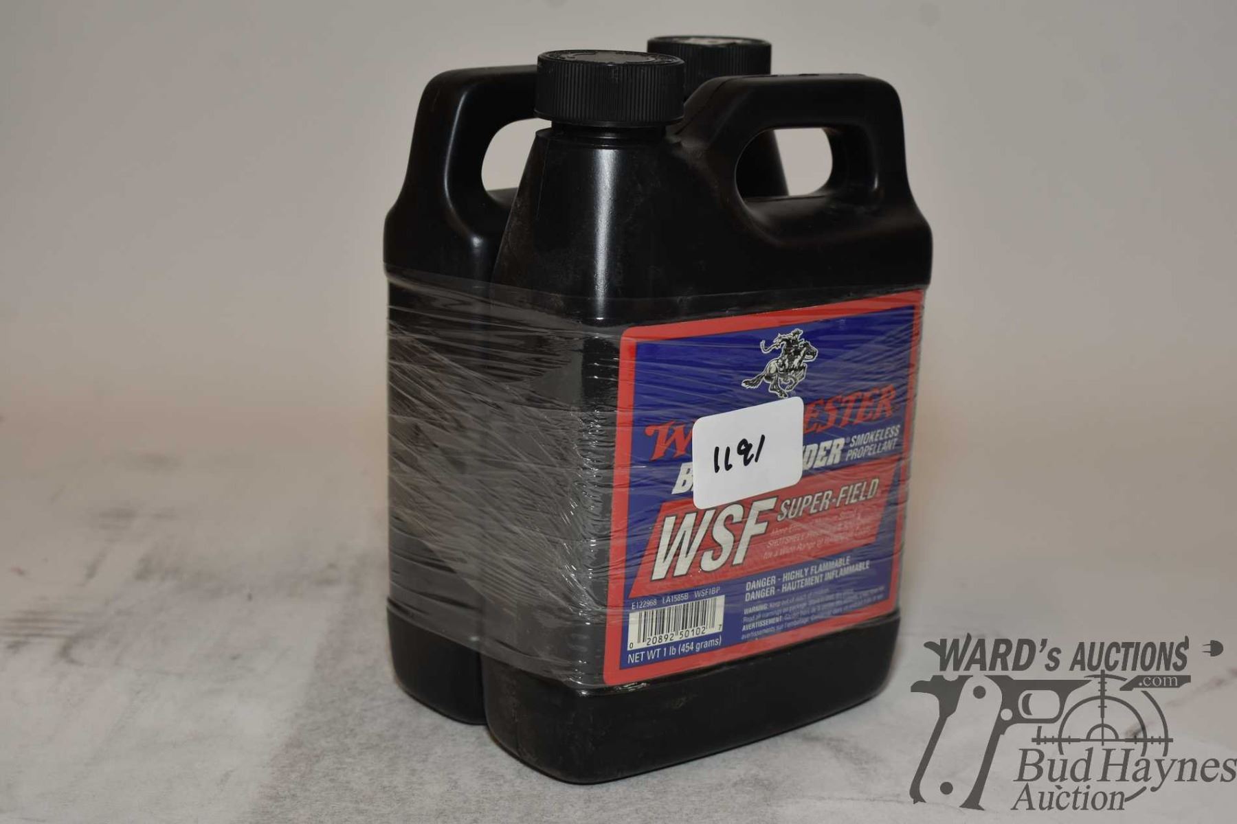 One full 1 lb container of Winchester ball powder WSF superfield and a 0.5 lb container of Winchester ball powder 231