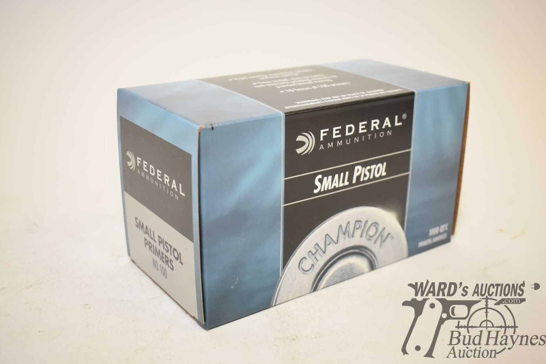 One full 1000 count box of Federal small pistol One full 1000 count box of Federal small pistol primers No. 100