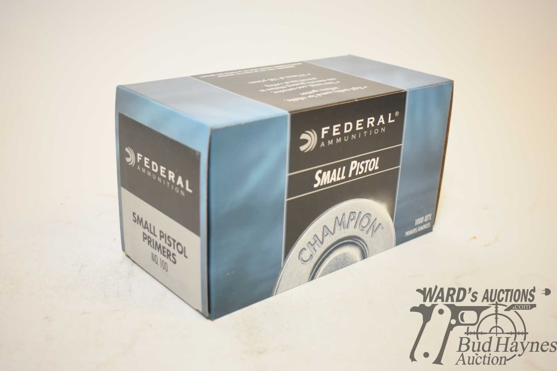 One full 1000 count box of Federal small pistol One full 1000 count box of Federal small pistol primers No. 100