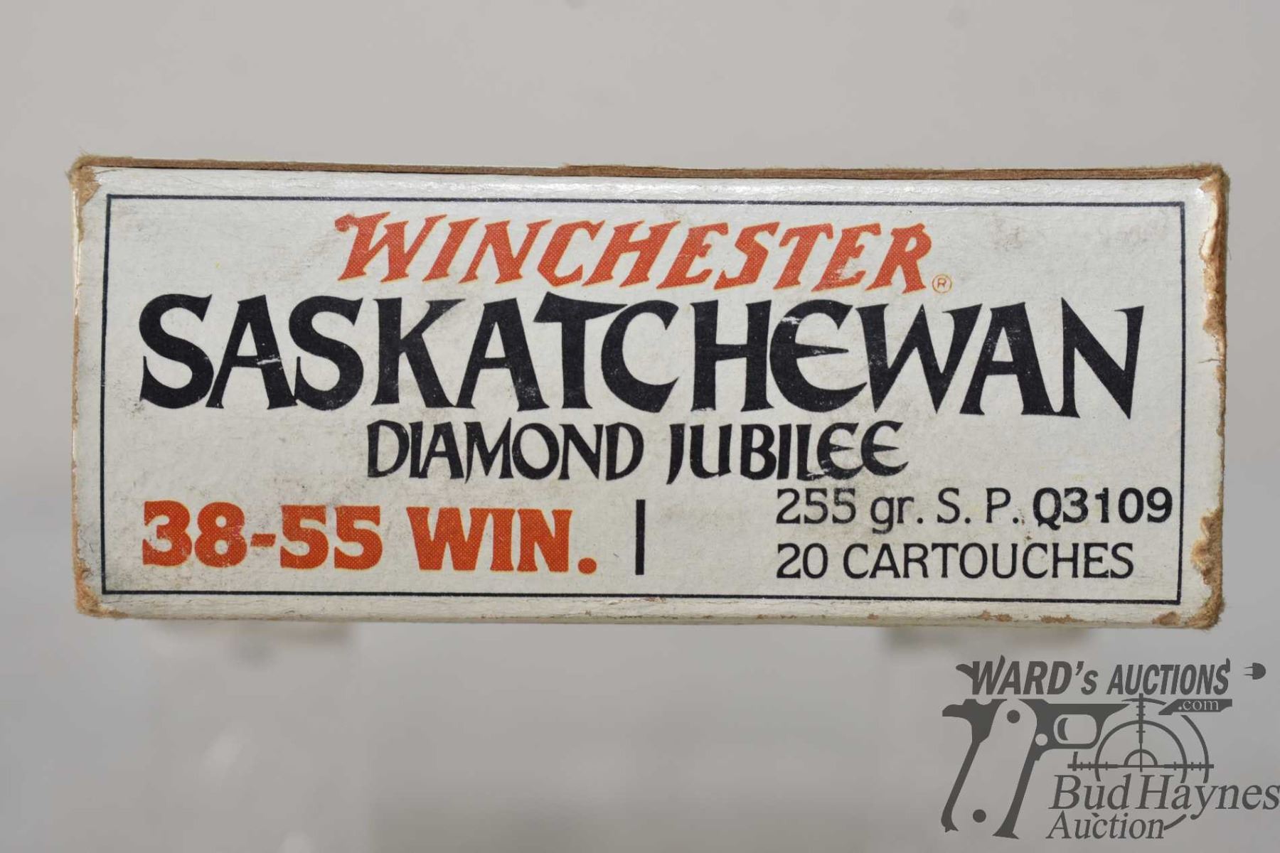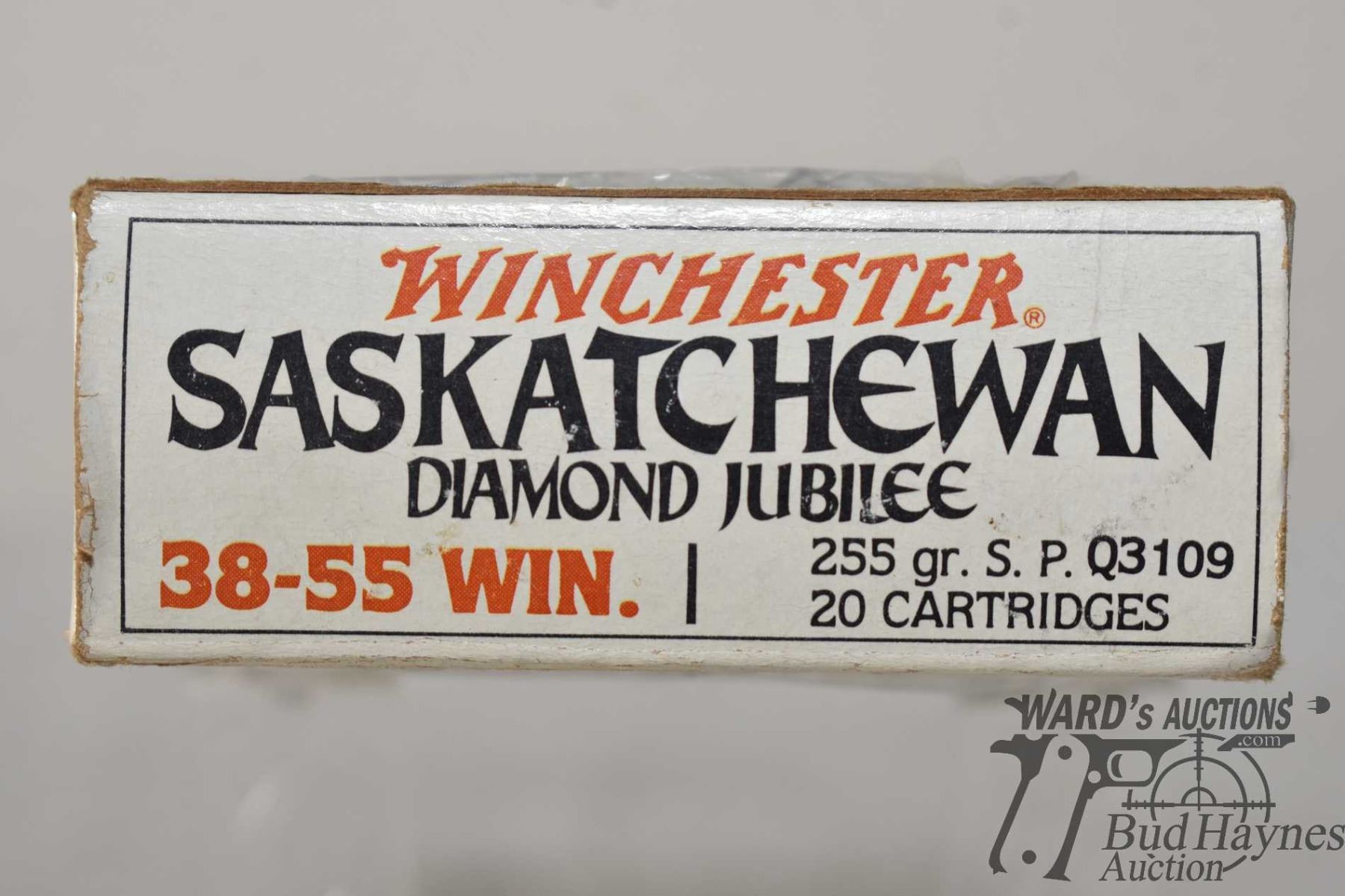 One full 20 count box Winchester Saskatchewan Diamond Jubilee .38-55 255 gr S.P., box not sealed but in ok condition and has all proper rounds