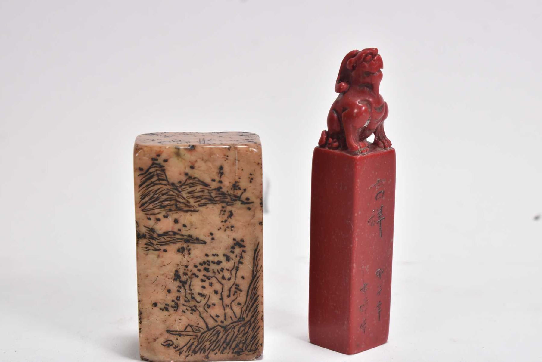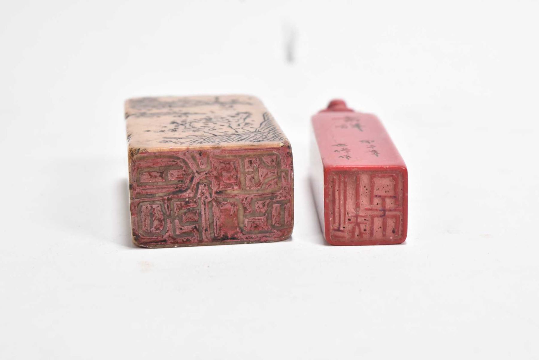 Oriental "Shosan" calligraphy stone stamp 4" in height and a blood stone stamp, purportedly 19th century