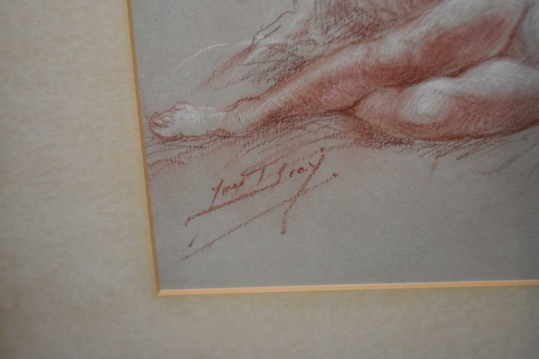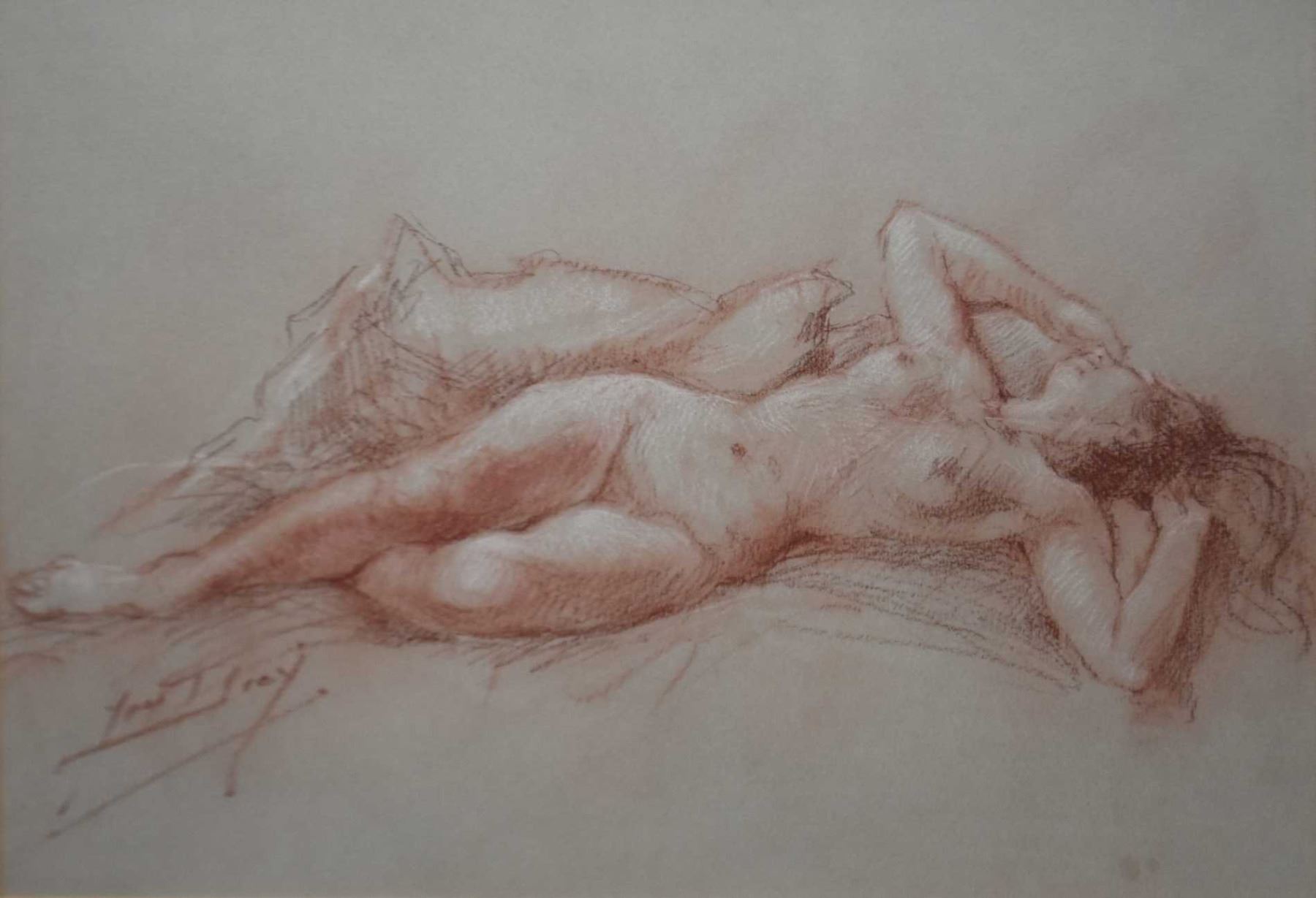 Original sanguine chalk drawing of a nude by French artist Yves Diey, 8" X 10 1/2"