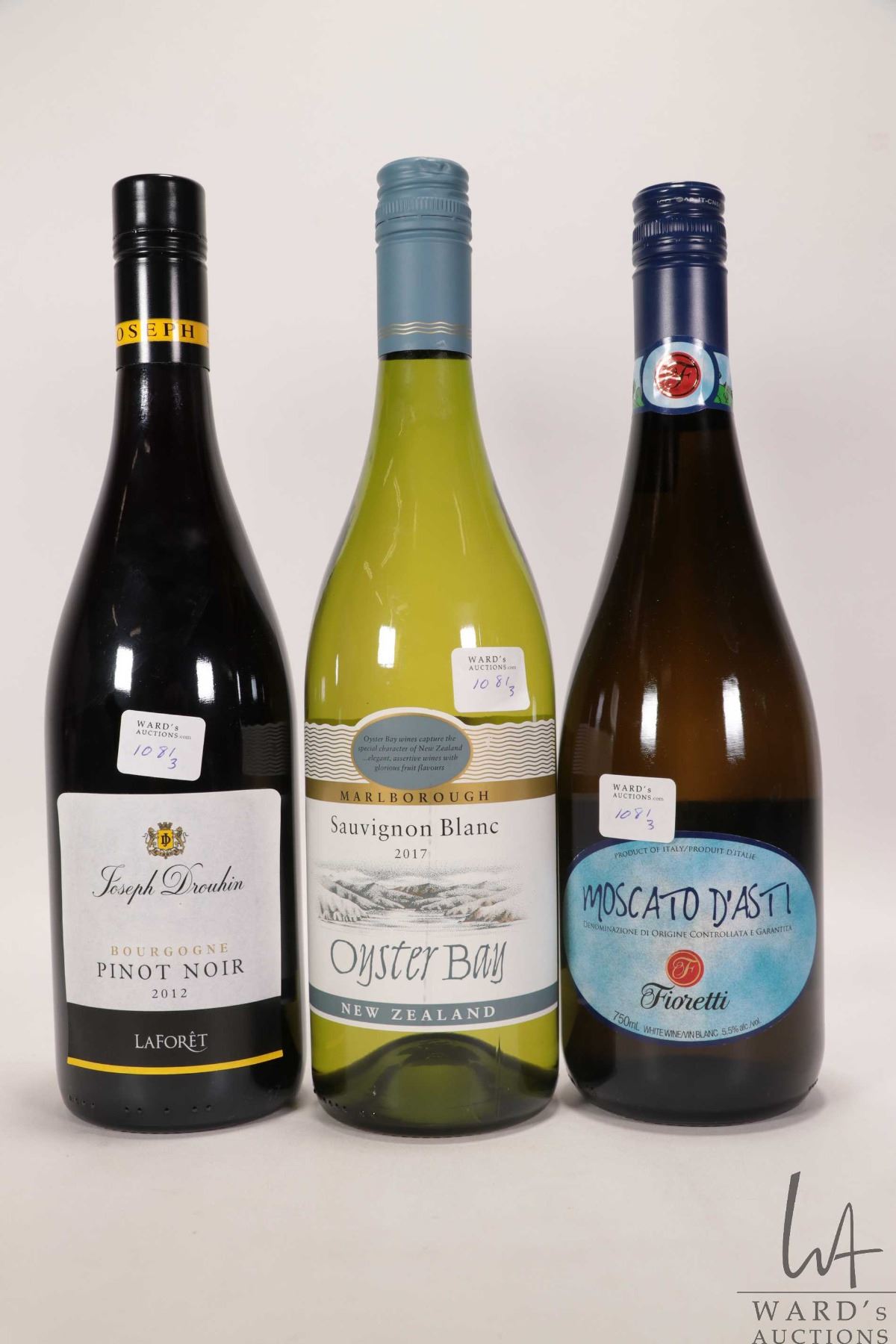Oyster Bay/ 2017/ Sauvignon Blanc/ 750ml/ 12.5% ABV, Fioretti/ Moscato D'Asti/ 750ml/ 5.5% ABV and LaForet/ Joseph Drouhin/ 2012/ Bourgonet Pinot Noir/ 750ml/ 12.5% ABV Note: Alcohol cannot be insured by any courier in Canada. Local pick up is recommended. Canadian buyers only.