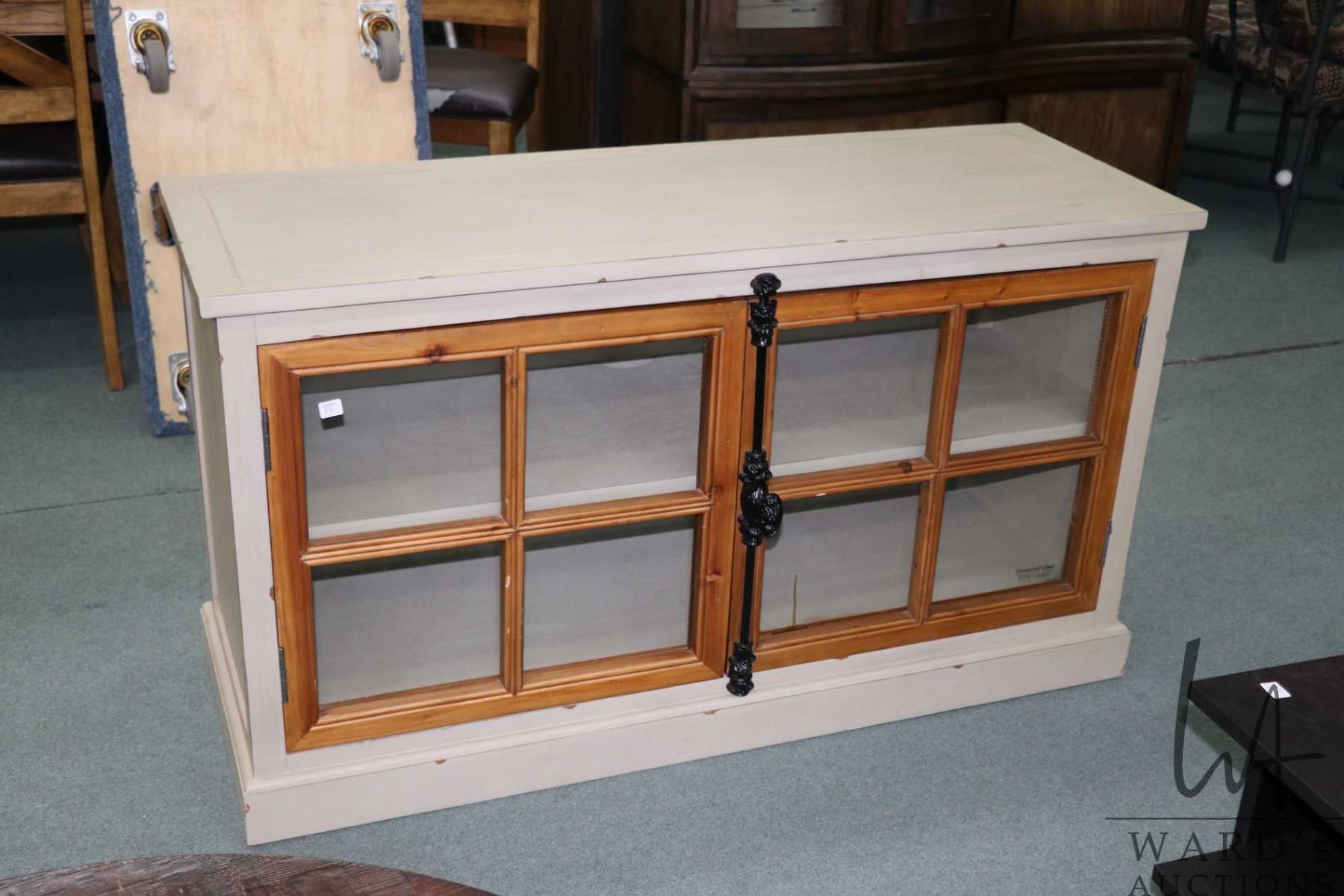 PIer One Cremone television cabinet with double glazed door storage, 28" H X 50" W X 18" D