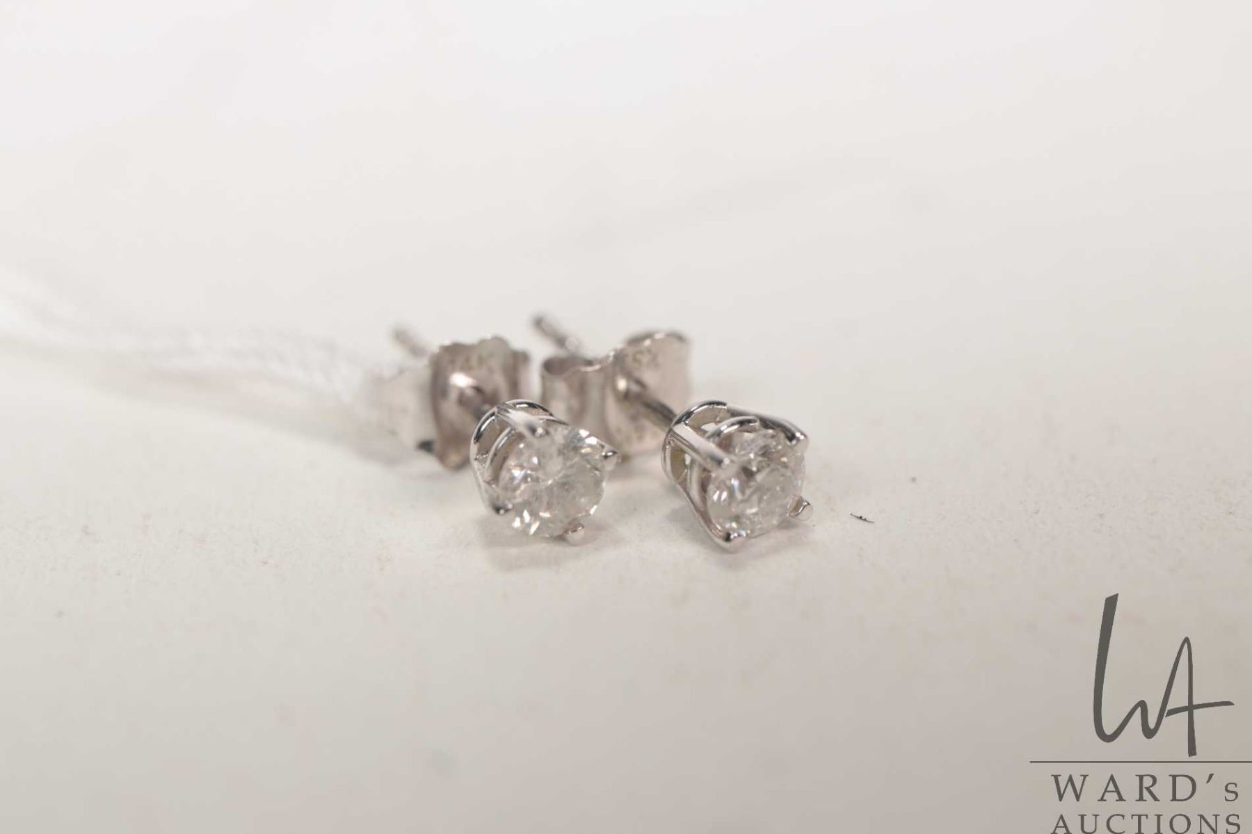 Pair of 14kt yellow gold and diamond solitaire earrings. .25cts total diamond weight