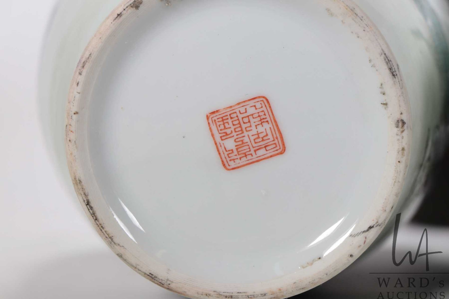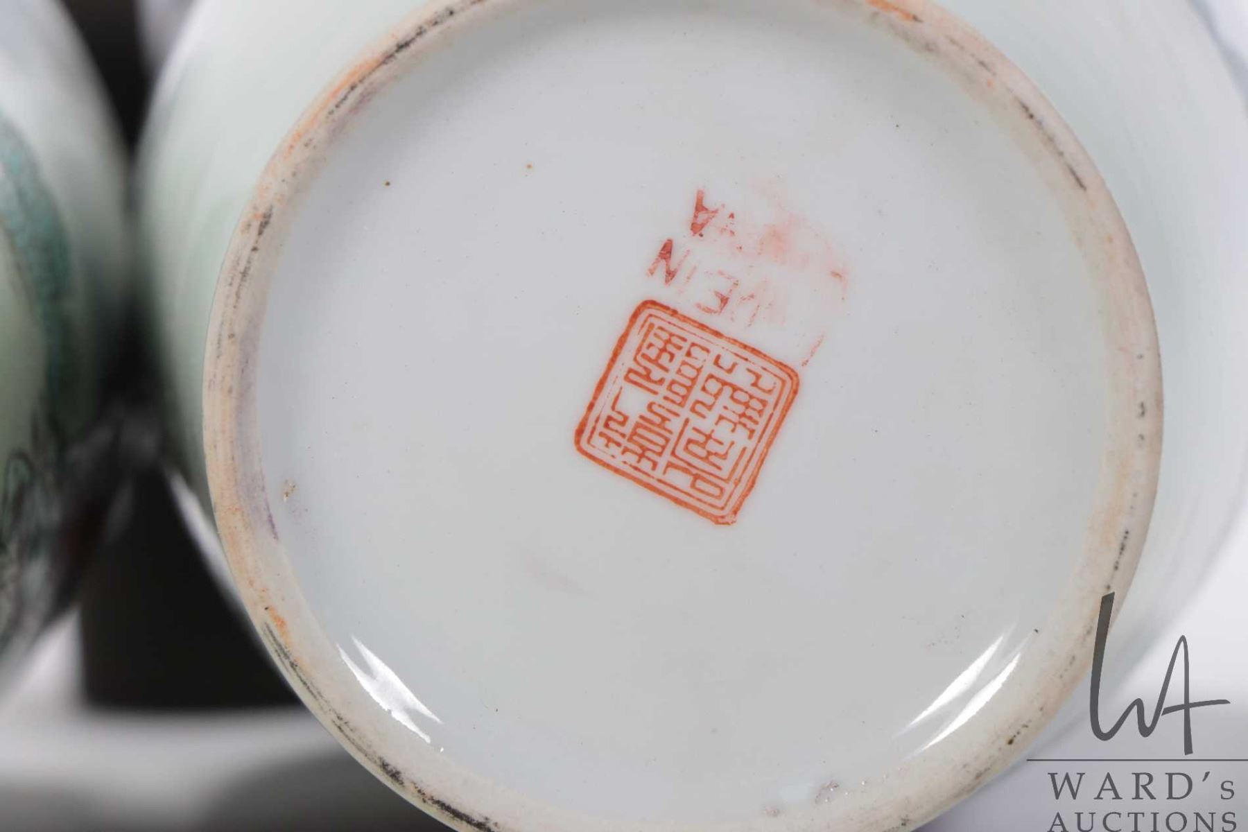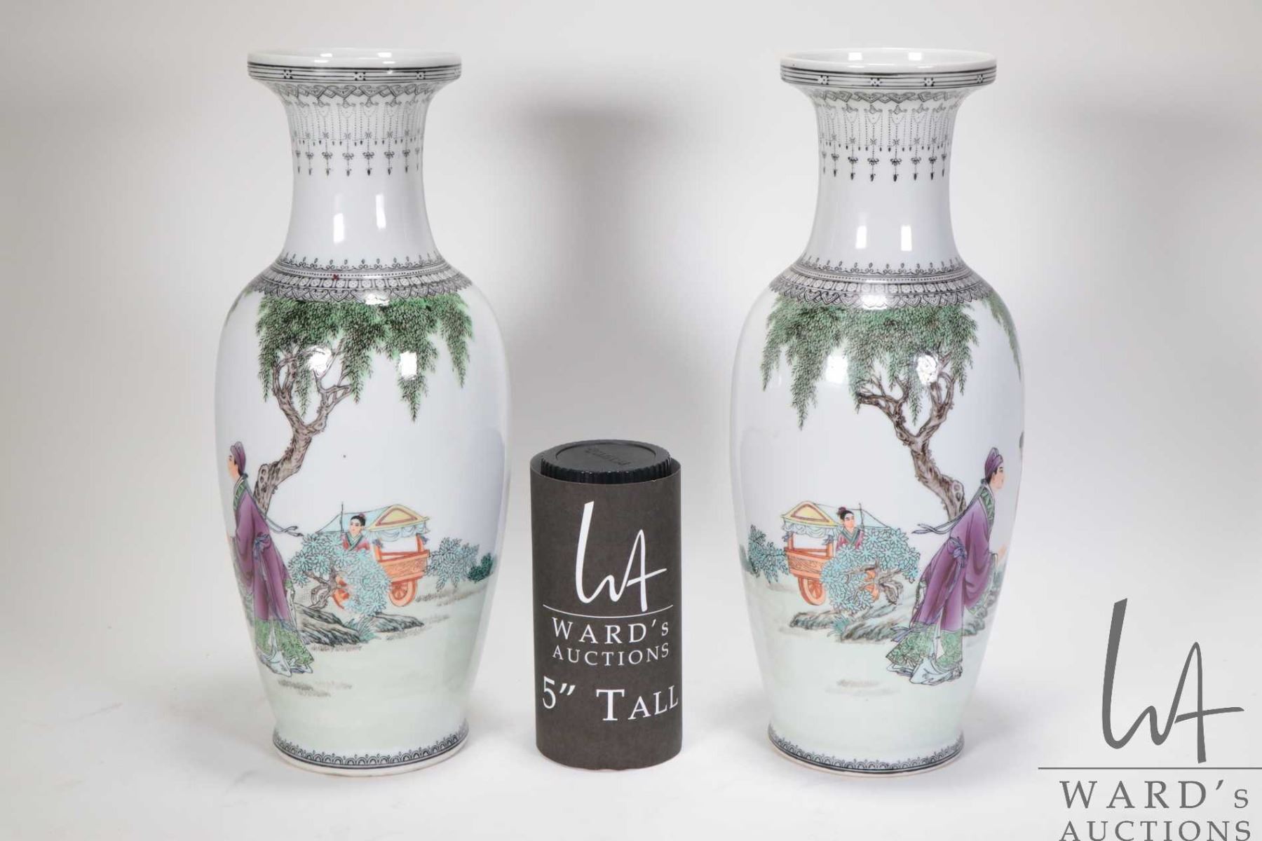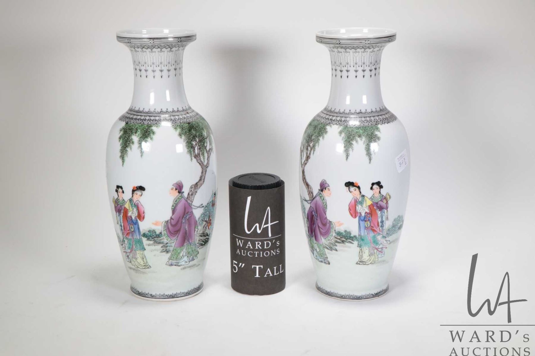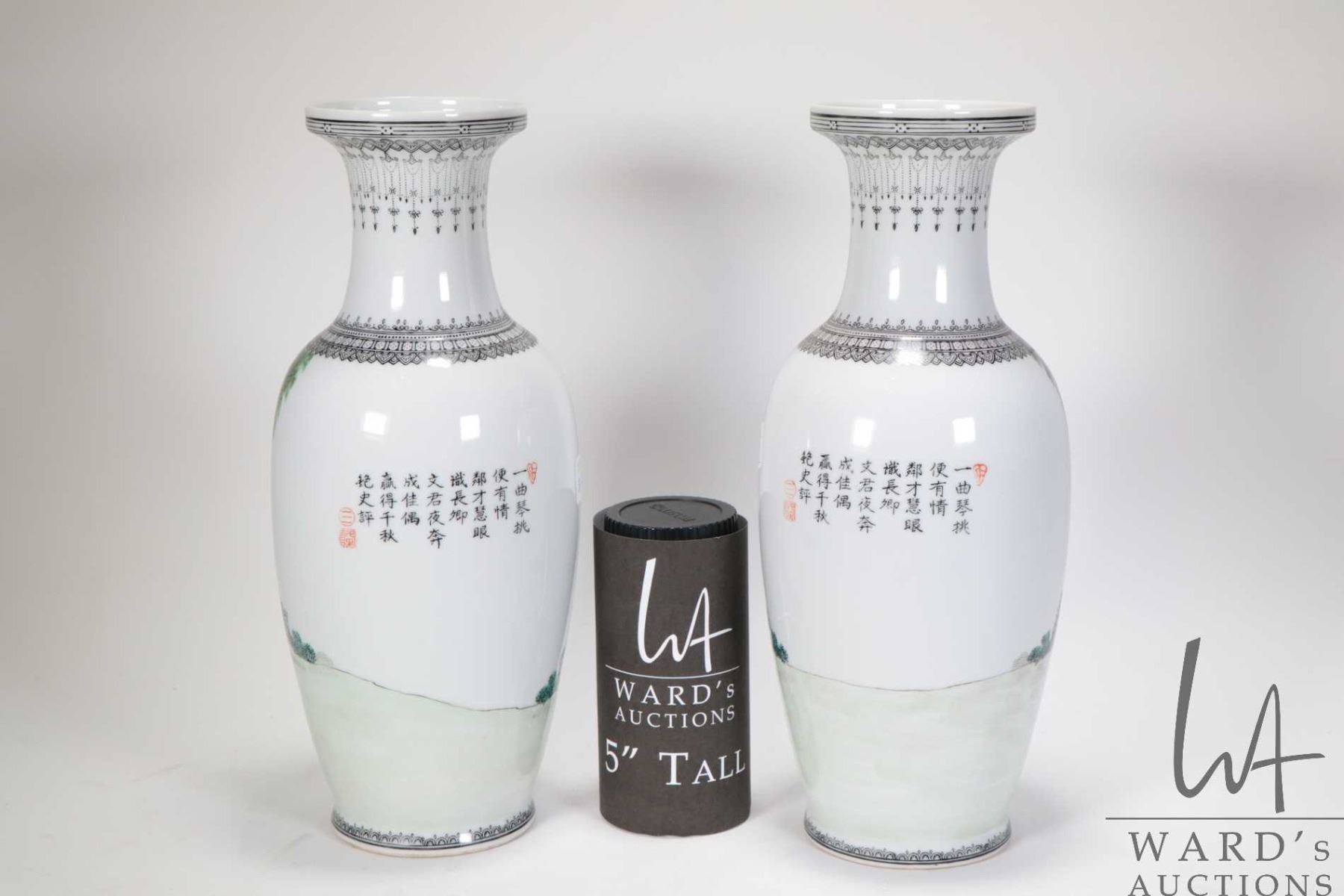 Pair of Oriental hand painted porcelain vases, each 12" in height