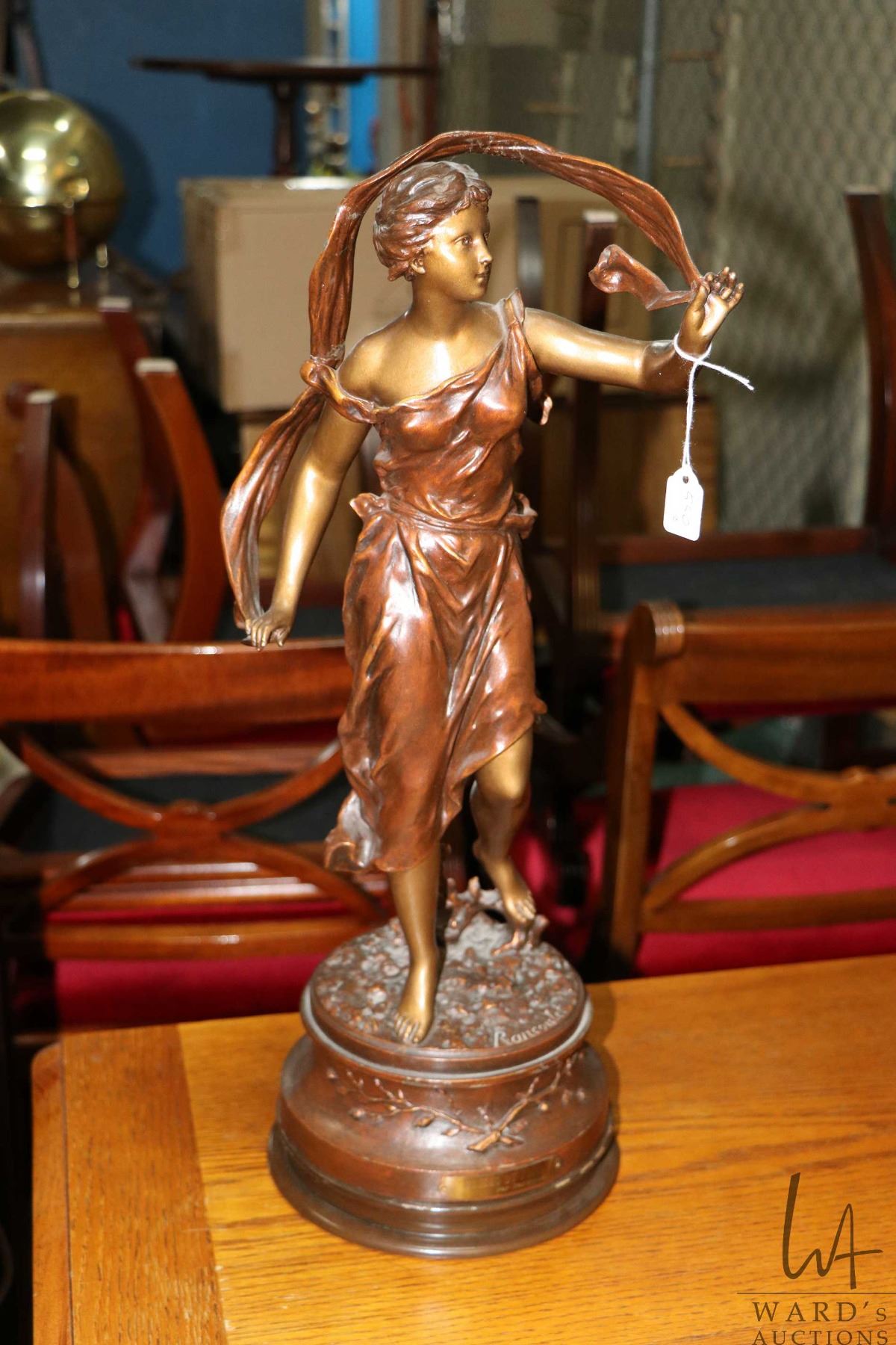Pair of complimenting Spelter figures "Brises-Du- Sud par Rancoulet" each on a plinth and each 22" in height