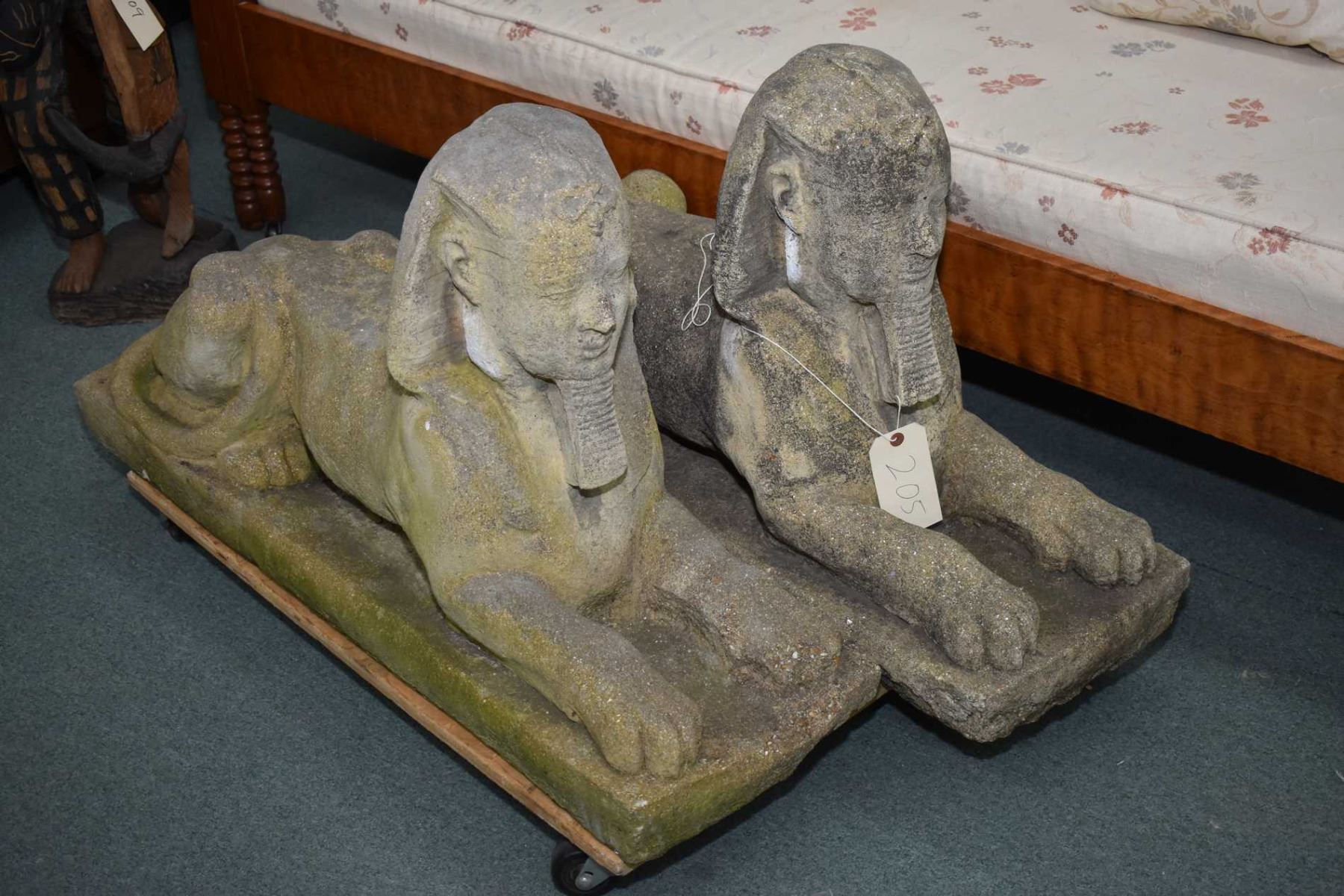 Pair of concrete yard sphinx' 39" in length