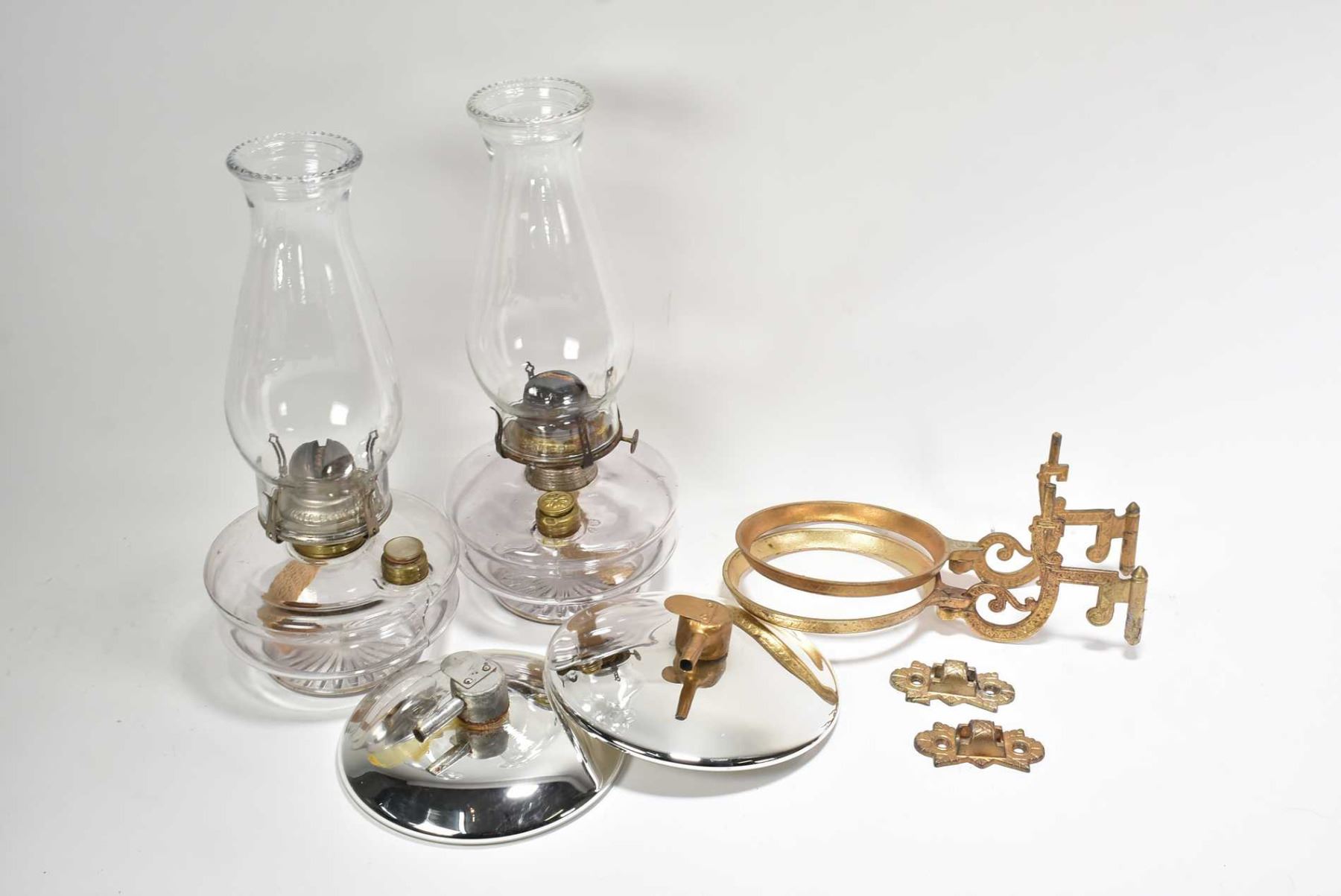 Pair of matching colourless oil lamps with brackets and reflectors. Not available for shipping. Local pickup only