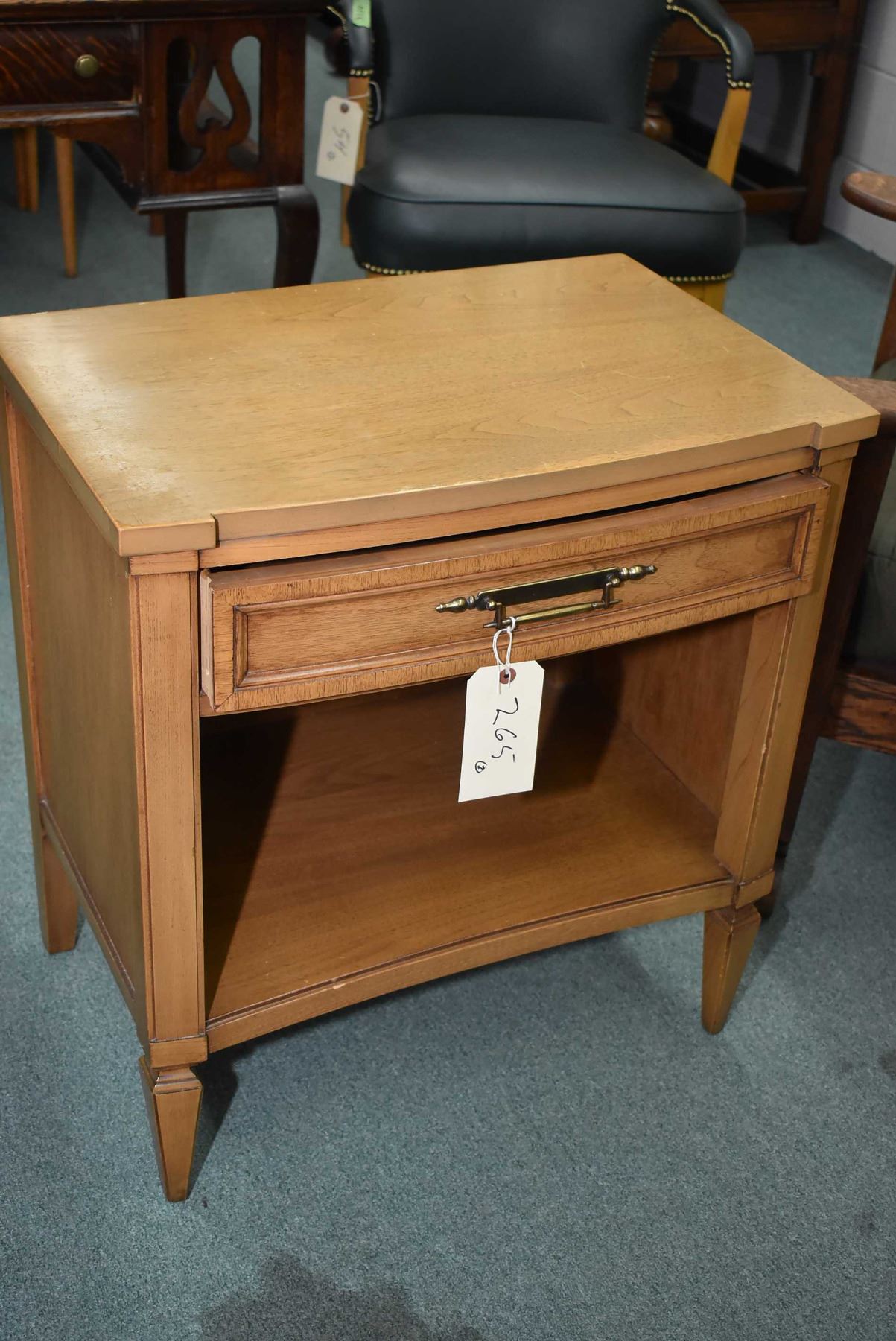 Pair of matching retro style wooden side table with single drawer made by Malcolm