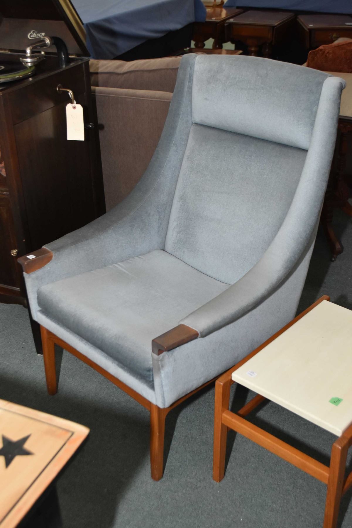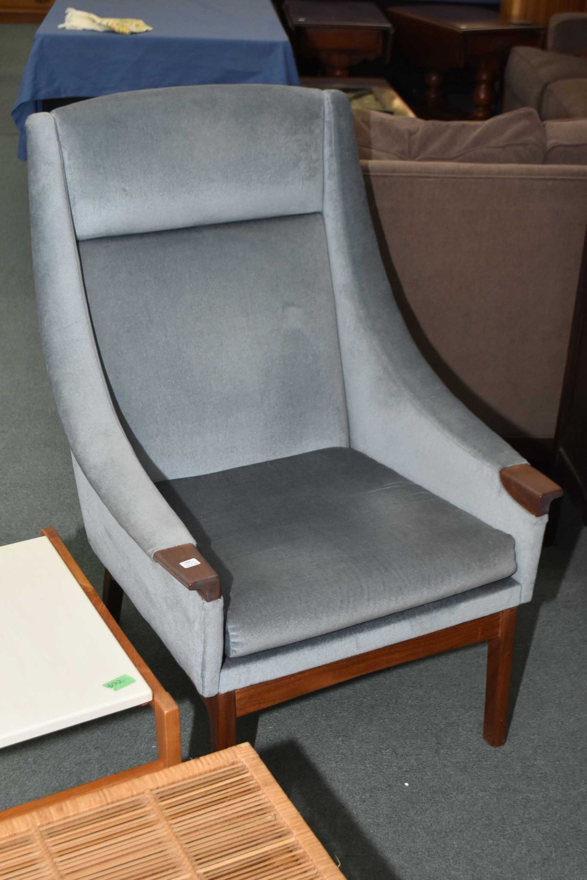 Pair of mid century modern teak framed velvet upholstered side chairs
