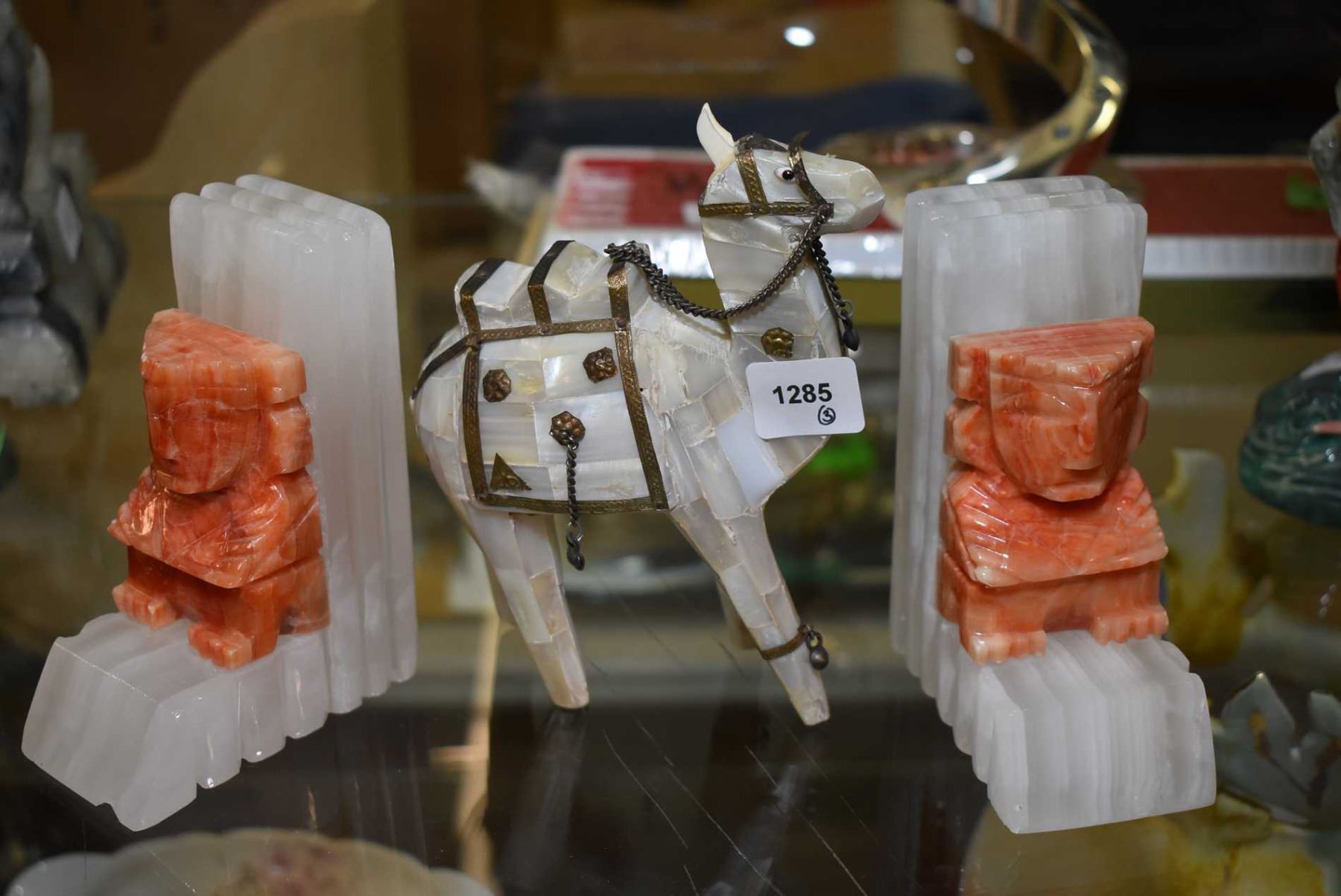 Pair of onyx bookend and a handcrafted camel