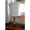 Pair of vintage Indian brass decorative engraved table lamps, 32" in height including shades. Note: Not available for shipping. Local pickup only