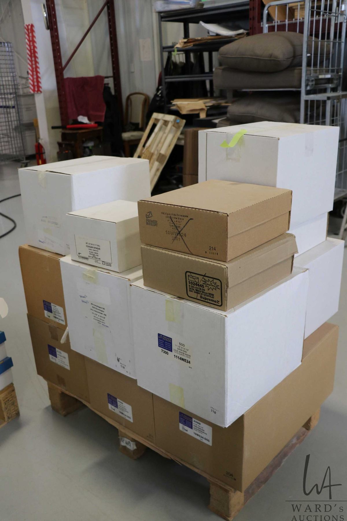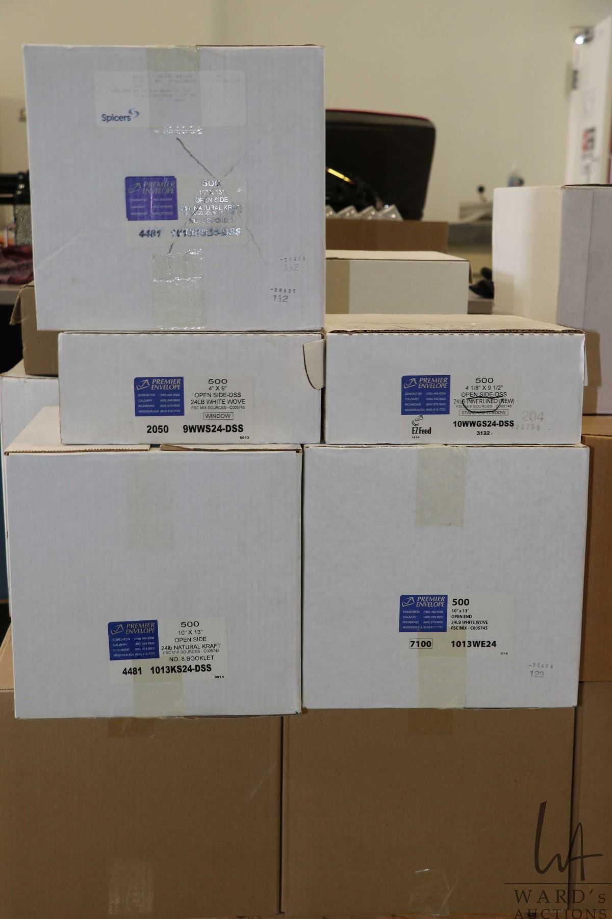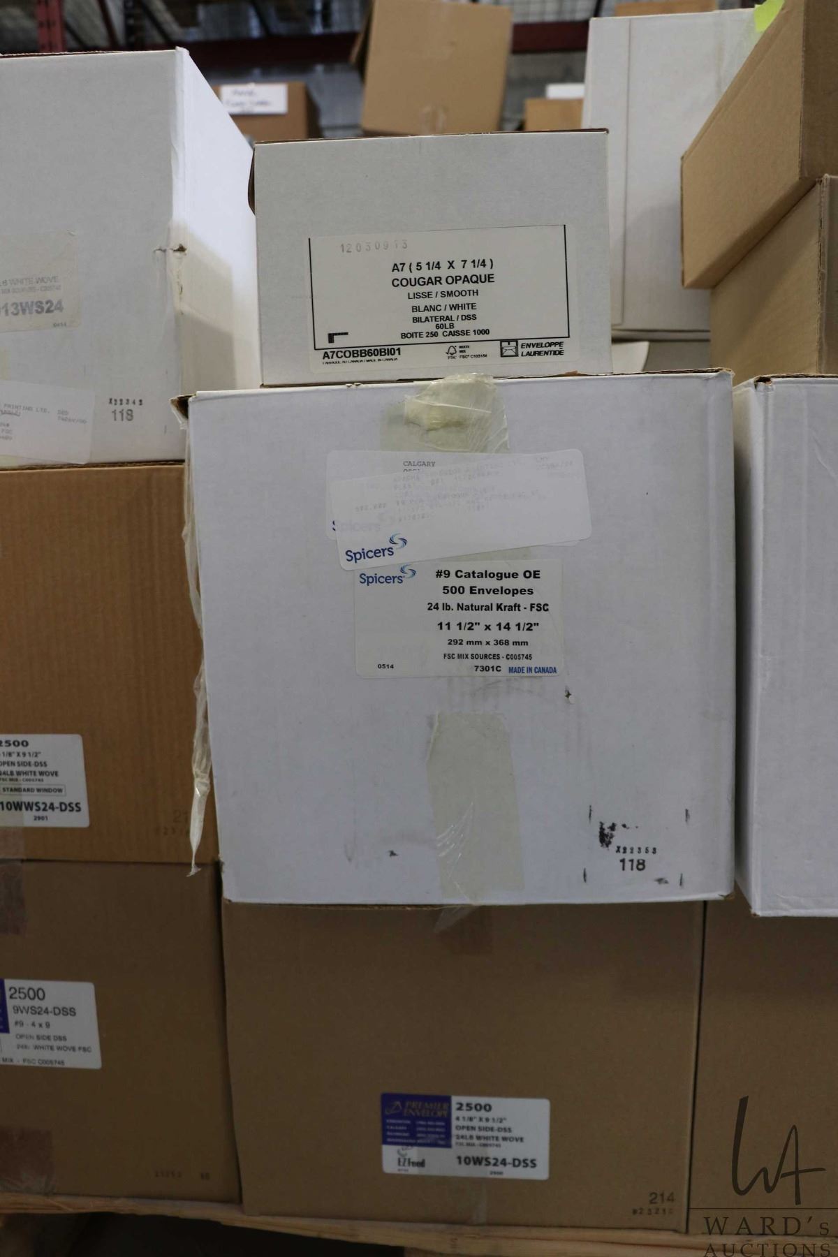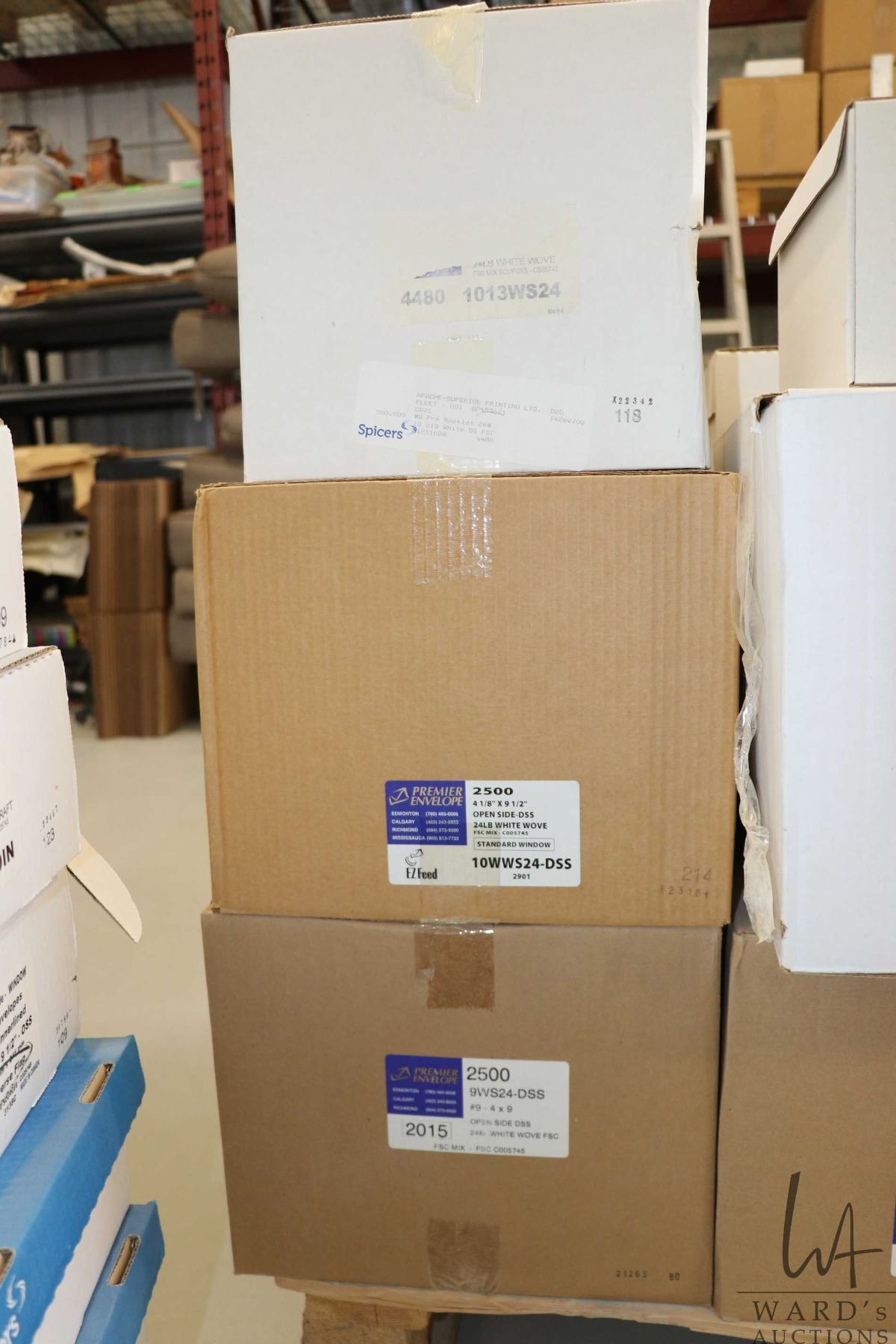 Pallet lot of envelopes. Pallet was wrapped and stacked after lotting, previewing by photos only.