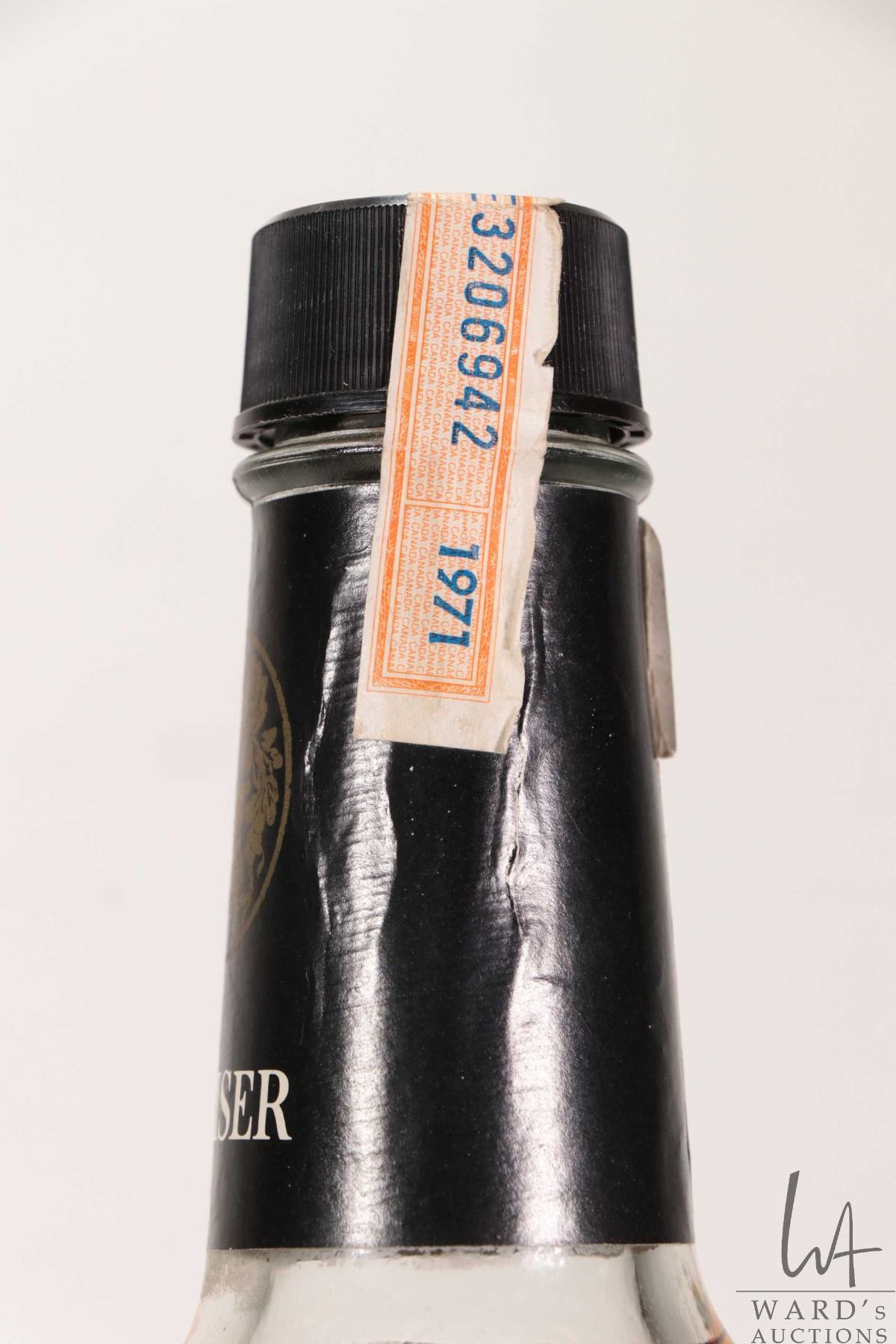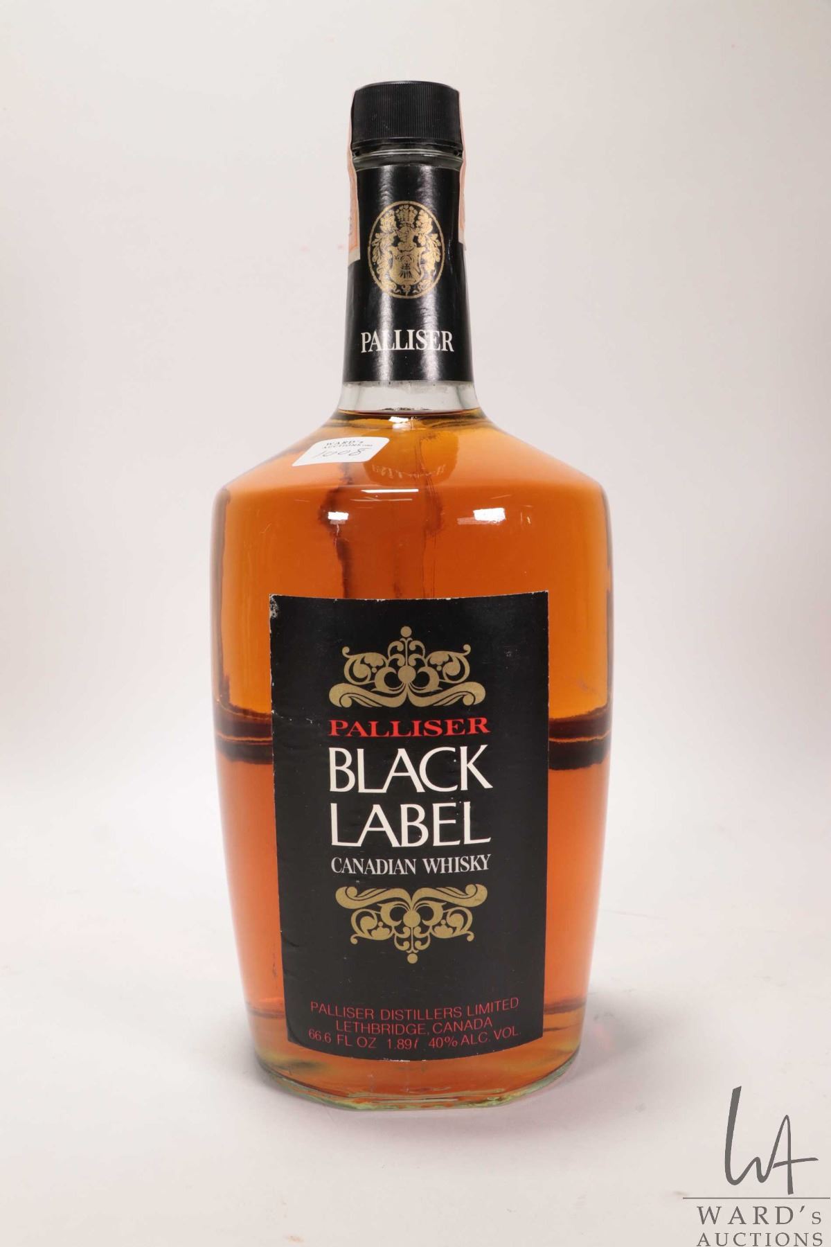 Palliser Black Label/ Canadian Whisky/ 66.6 Fl Oz/ 1.89 Ltr. 40% ABV/ Intact Excise label dated 1971 Note: Alcohol cannot be insured by any courier in Canada. Local pick up is recommended. Canadian bidders only.