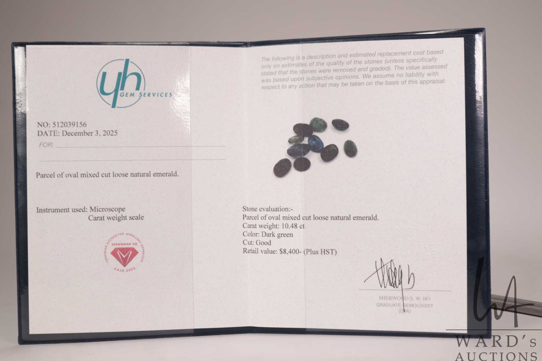 Parcel of mixed loose cut emerald gemstones, 10.5ct total weight with certificate provided by consignor