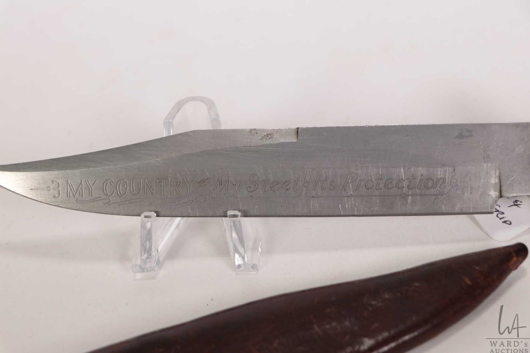 Parker Bowie knife with etched "My Country, My Steel, Its Protection" engraved on a 6 1/4" blade, st