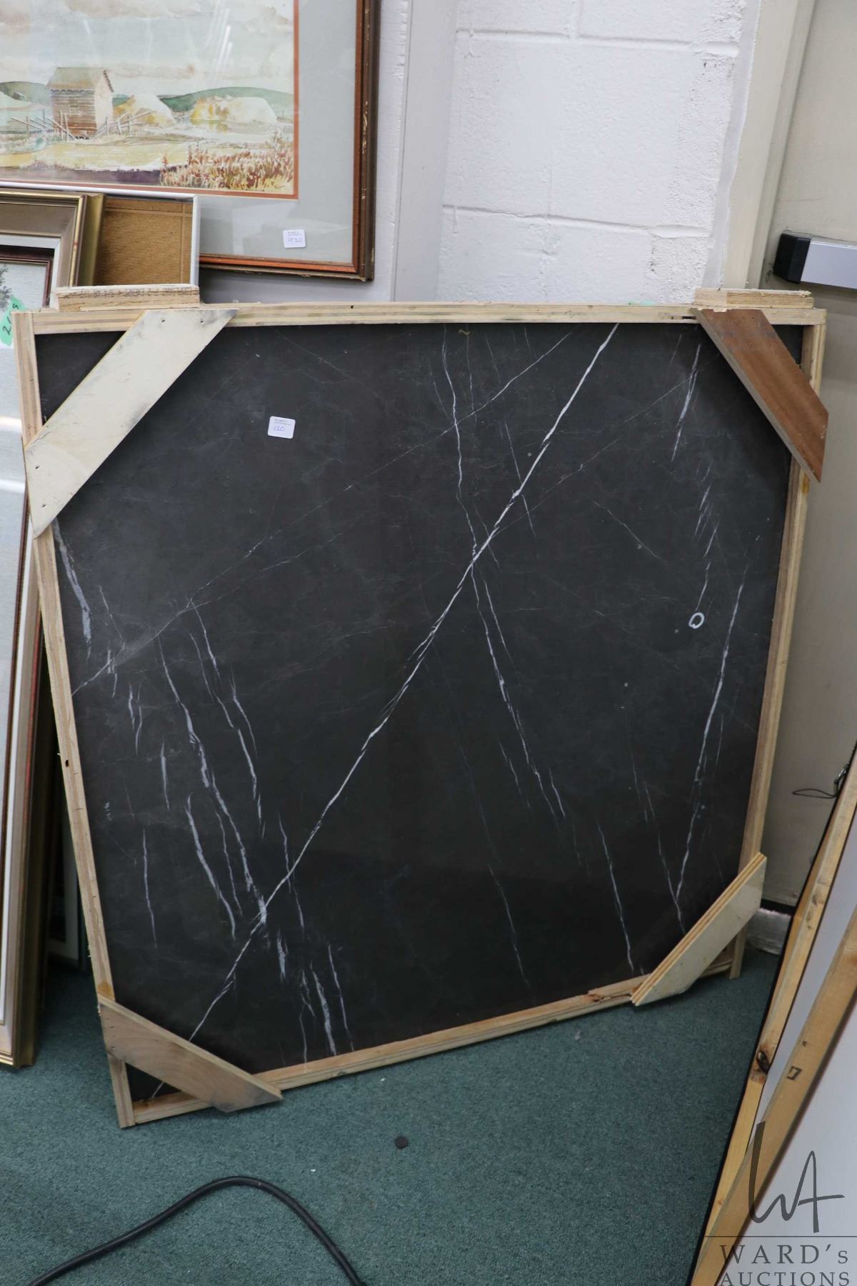 Piece of white veined black marble 35" square