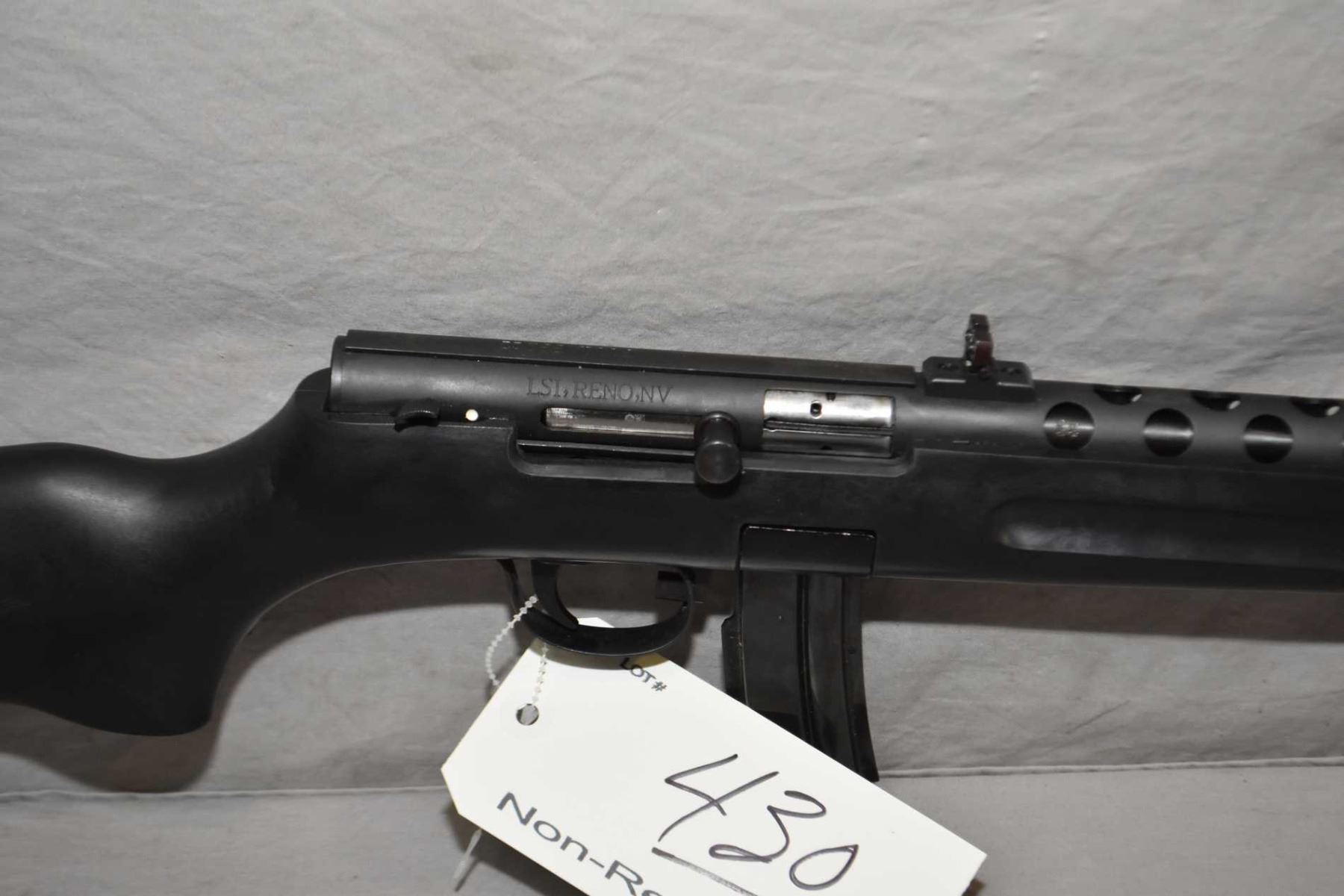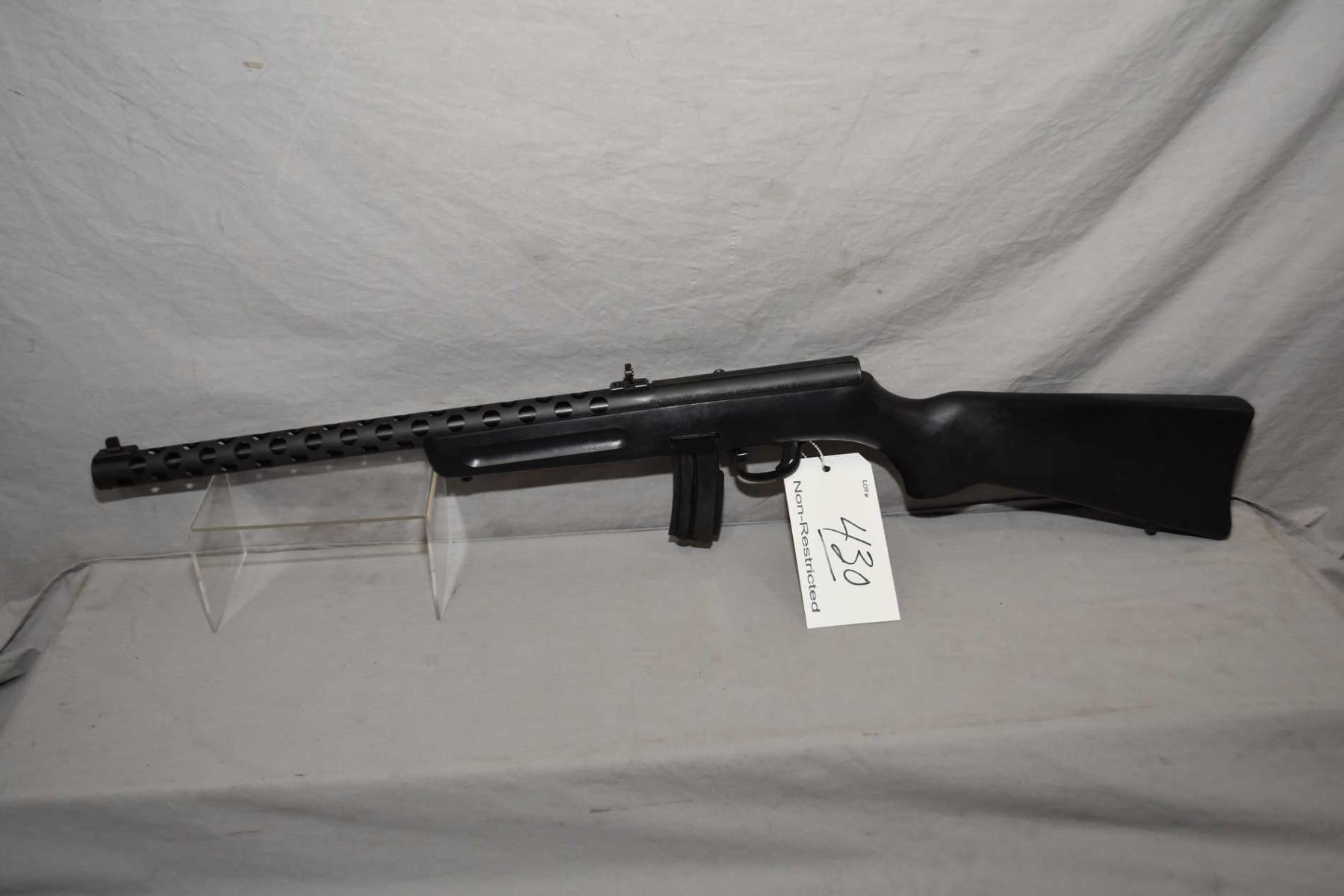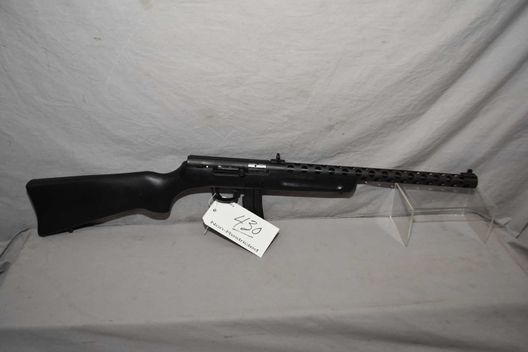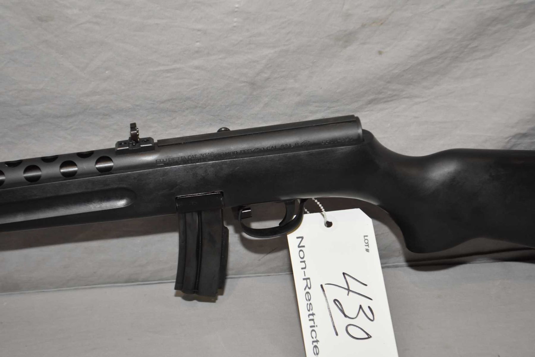 Pietta ( Puma ) Model PPS/ 50 .22 LR Cal Mag Fed Semi Auto Rifle w/ 16" bbl [ blued finish, barrel sights, cooling shroud, integral scope base, composite pistol grip stock with sling studs, few marks to stock and metal , c/w original box ] Ser # PP004596