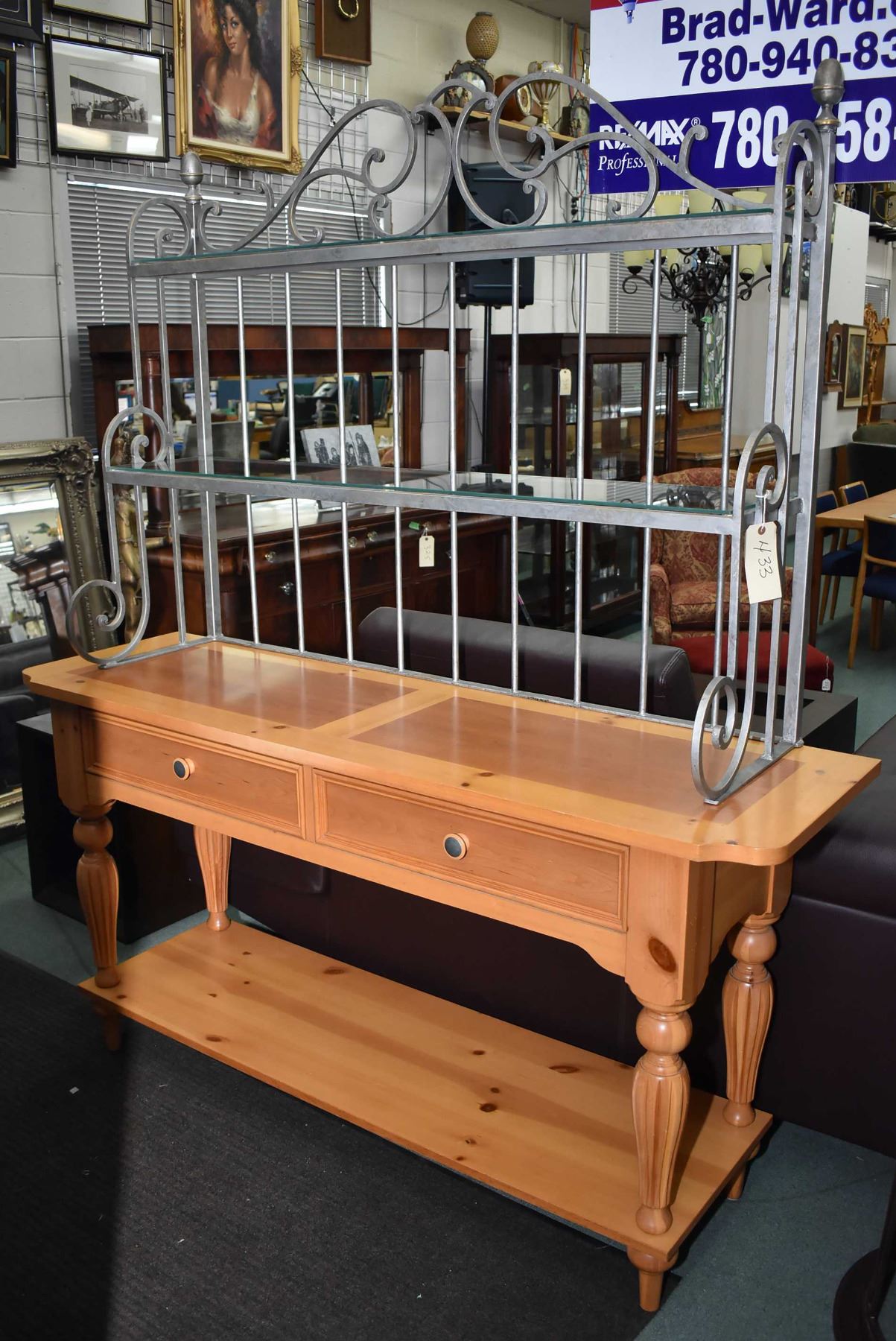 Pine and Metal Welsh dresser style sideboard with two glass shelves from the Eddie Bauer's Lifestyle Collection by Lane, 83" in height