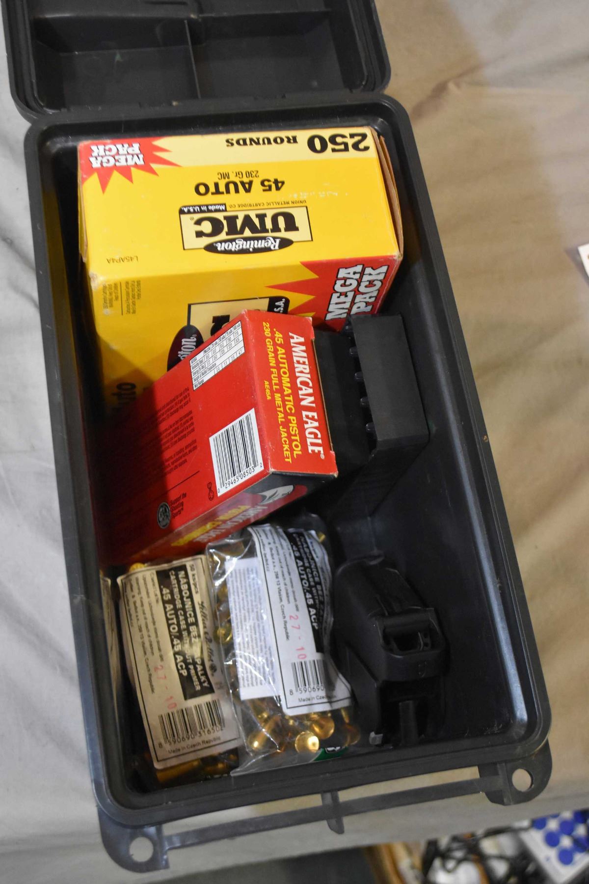 Plastic Ammo Box : 250 Rnds UMC .45 Auto Cal 230 Grain Ammo - One Box American Eagle .45 Auto Cal Ammo - 2 New Bags .45 Auto Brass - Uplula Mag Loader for .45 Auto / .9 MM