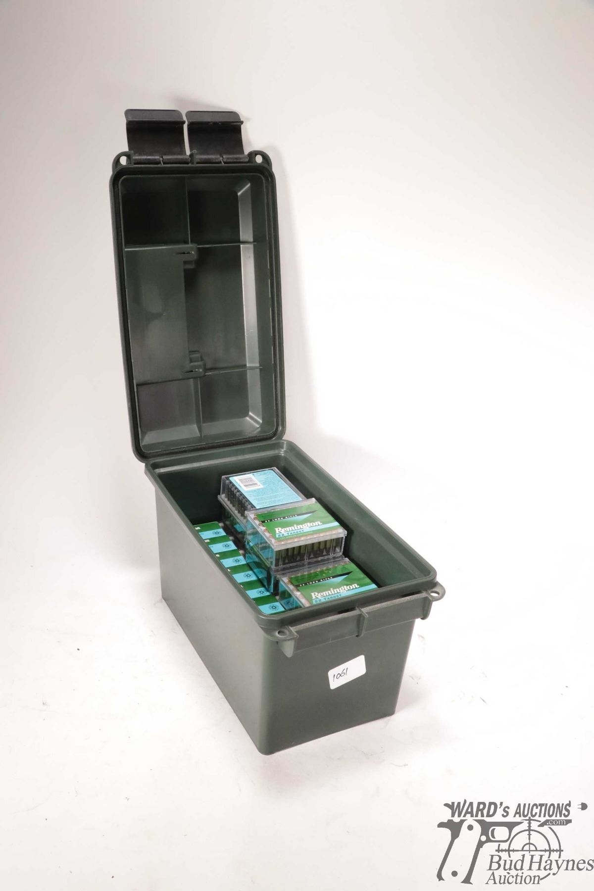 Plastic ammo box w/ 23 full 100 count packs of Plastic ammo box w/ 23 full 100 count packs of Reming