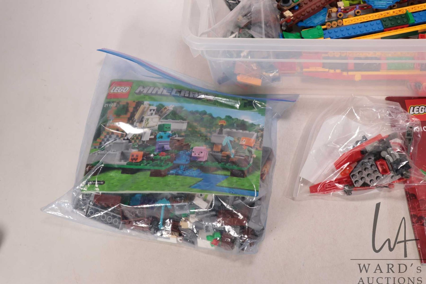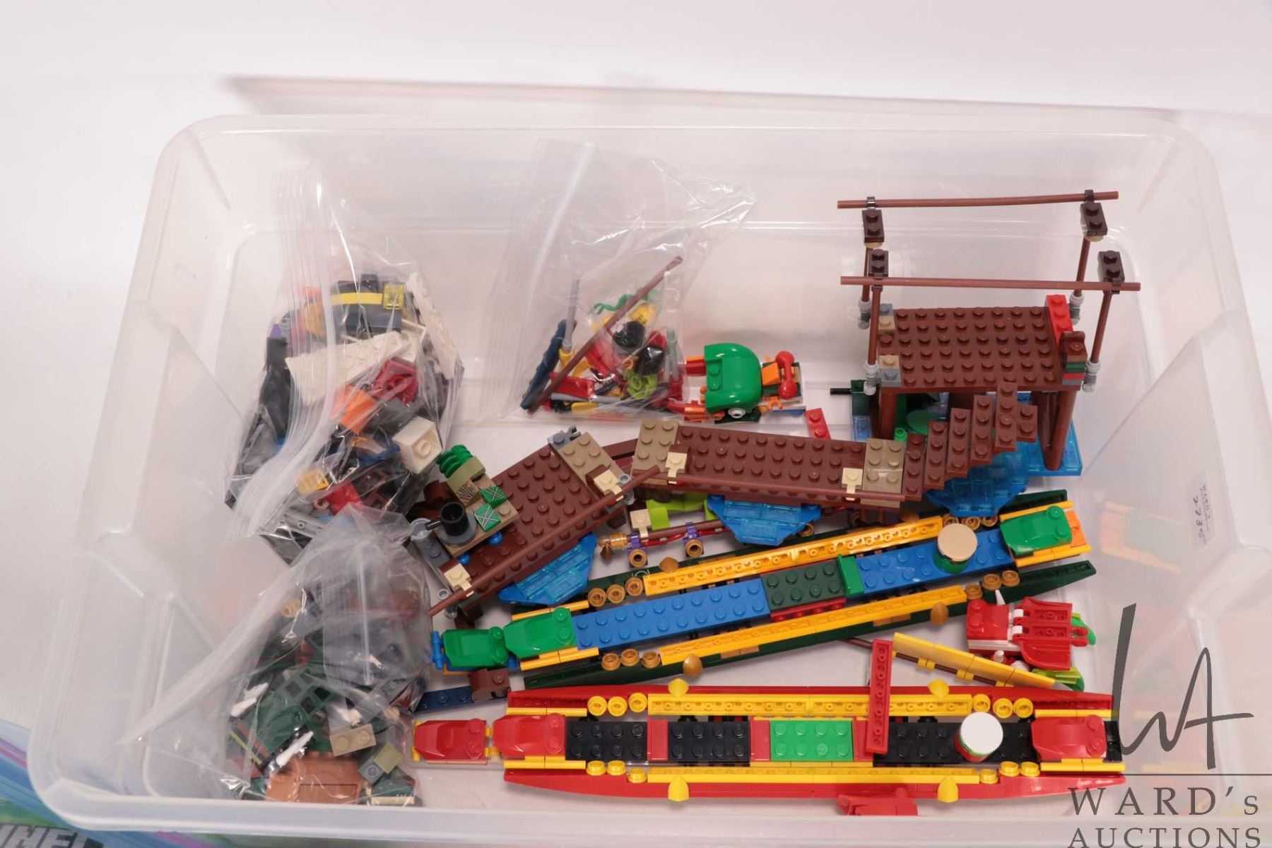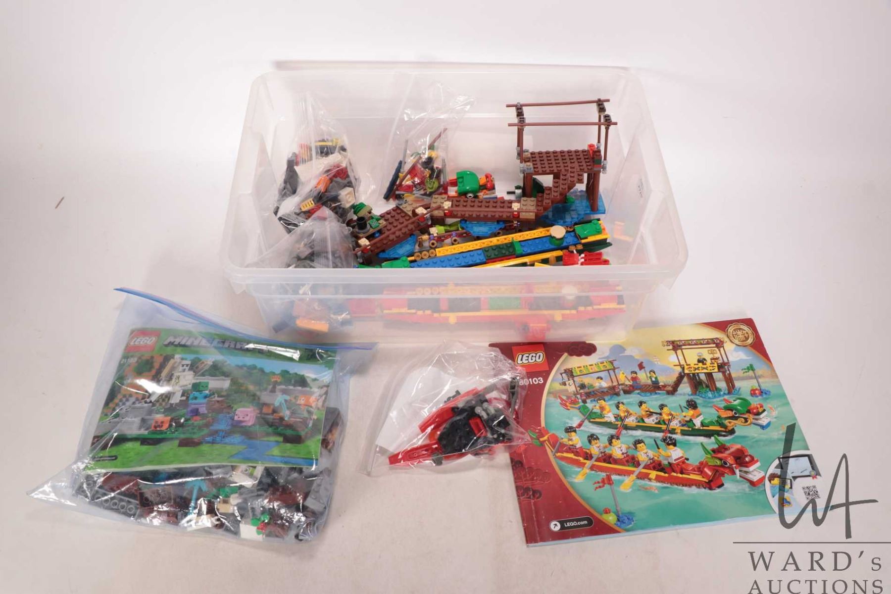 Plastic tub of Lego pre-built kits including no. 80103 Dragon Boat race, no. 21123 "Minecraft" The Iron Gollum and a couple of small unnamed kit. Completeness not confirmed or guaranteed. Bid accordingly
