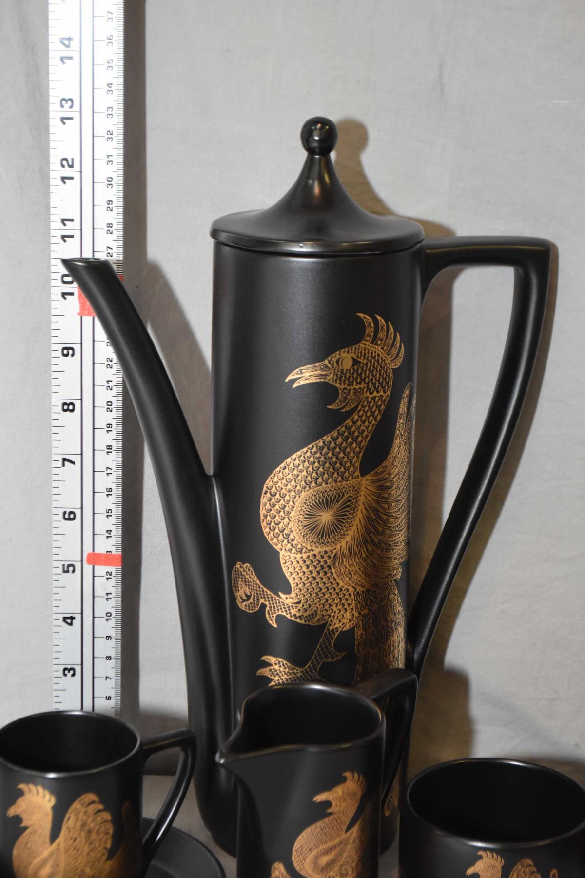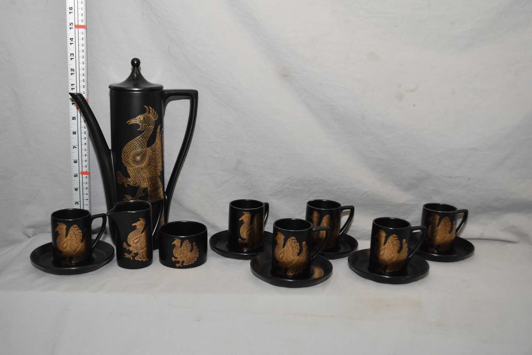 Portmerion "Phoenix" coffee set including six cups and saucers, coffee pot, cream and open sugar