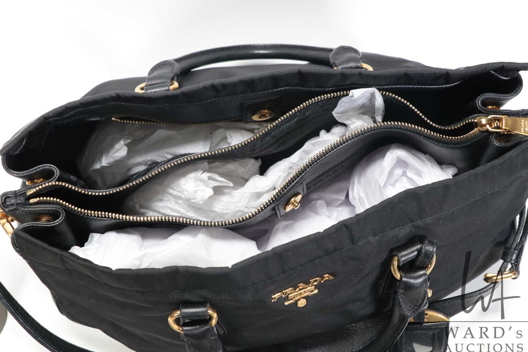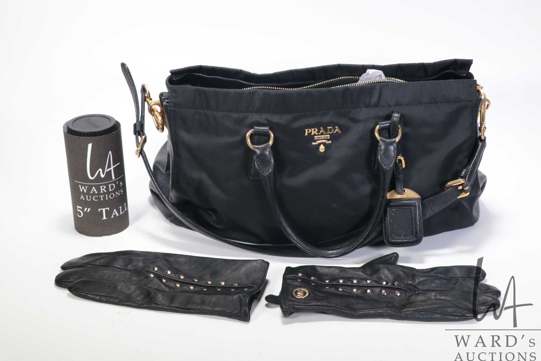 Prada nylon Saffiano purse with shoulder strap and cloth bag plus a pair of Michael Kor black leather gloves