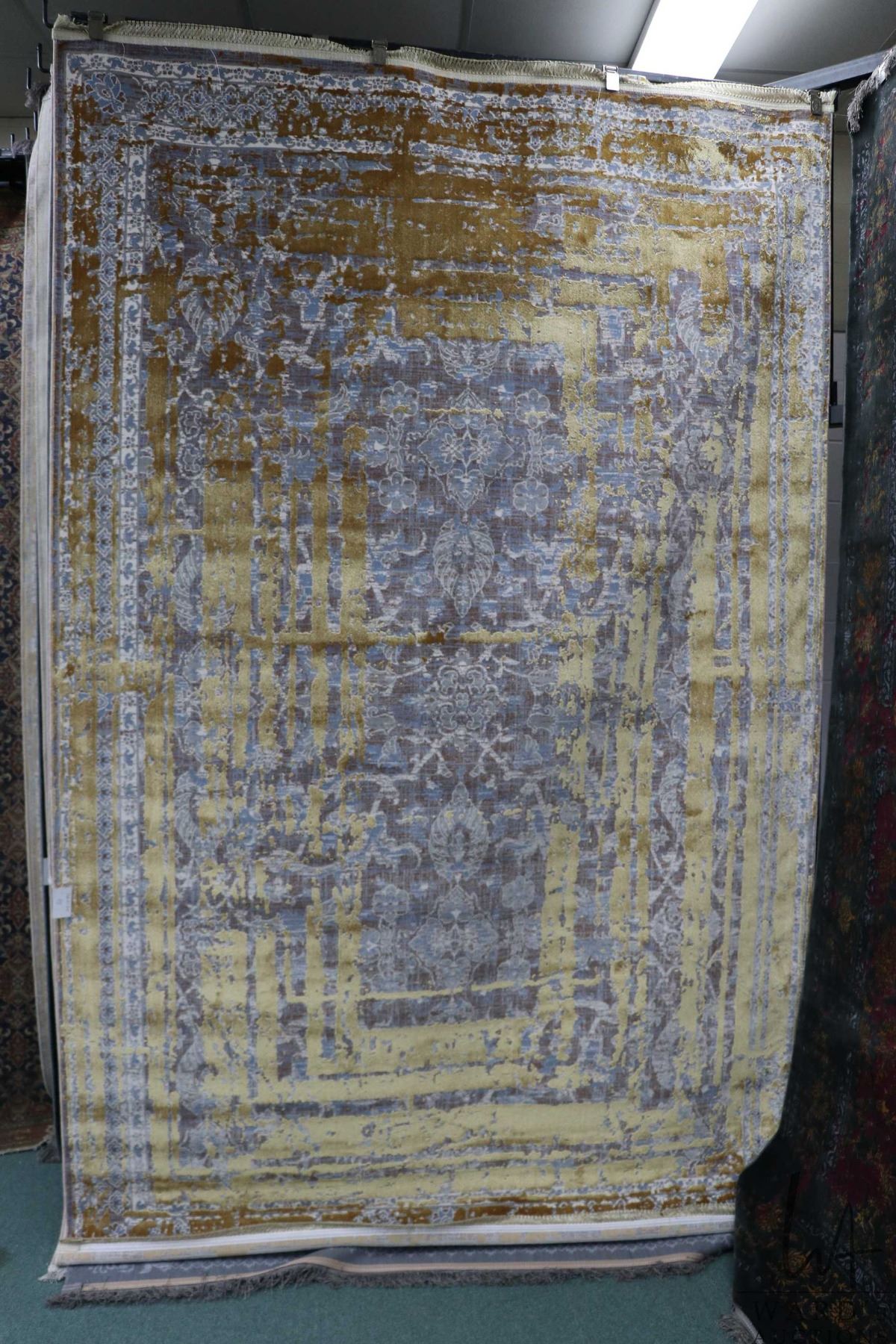 Premium Collection Sizan carpet, polyester, acrylic blend in shades of cream, pale blue and gold, 76" X 120"