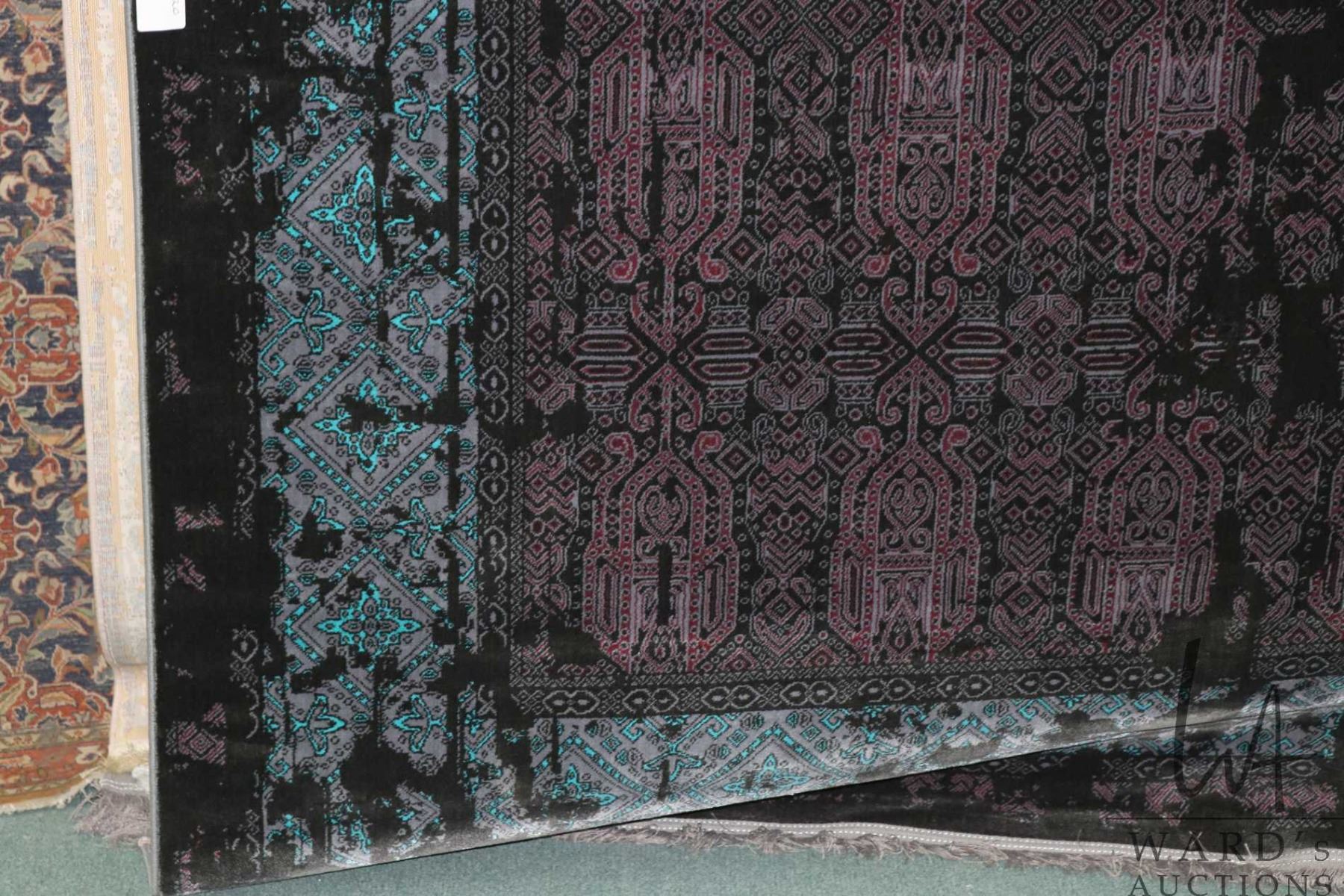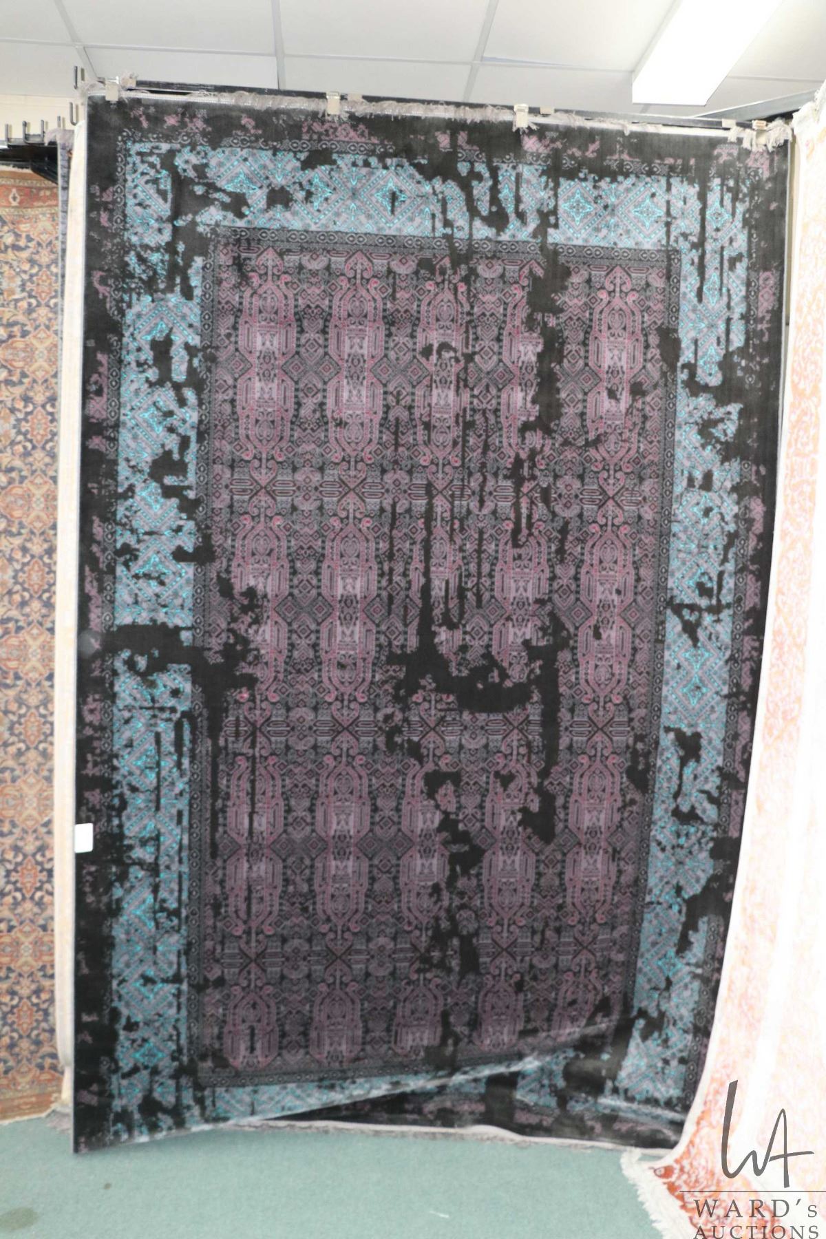 Premium Collection Sizan carpet, polyester, acrylic blend in shades of greys, black, teal and purple, 76" X 120"