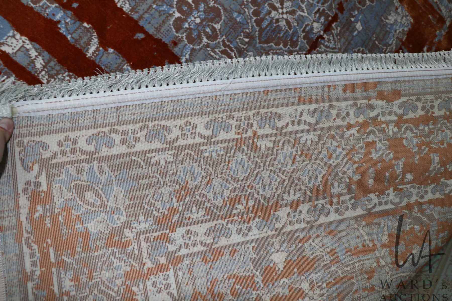 Premium Collection Sizan carpet, polyester, acrylic blend in shades of pale blue, brown and copper 76" X 120"