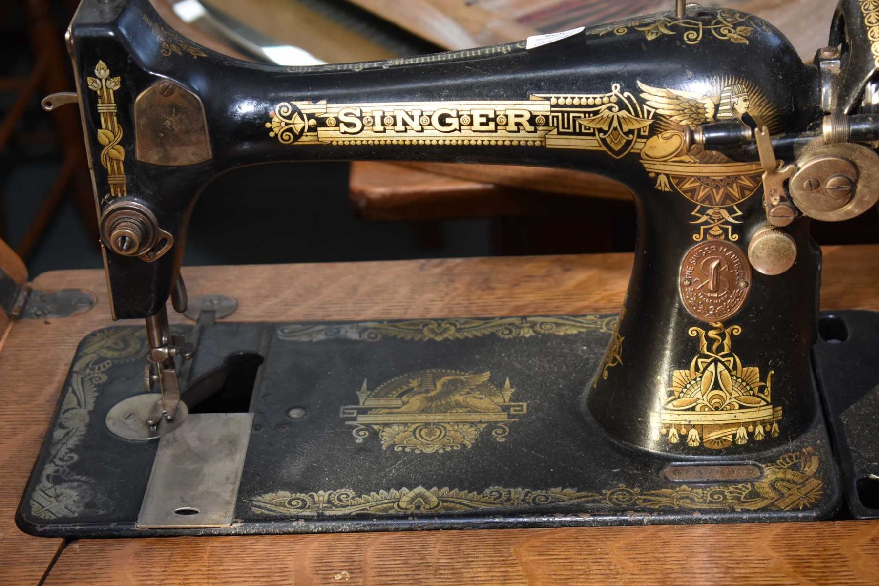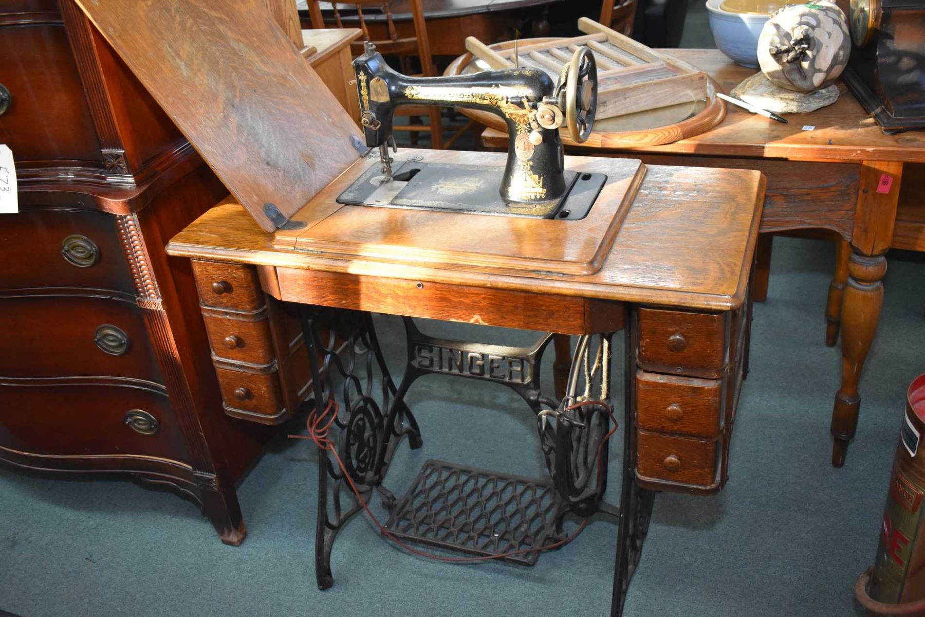 Primitive single drawer baker's table and a oak cased Singer treadle sewing machine