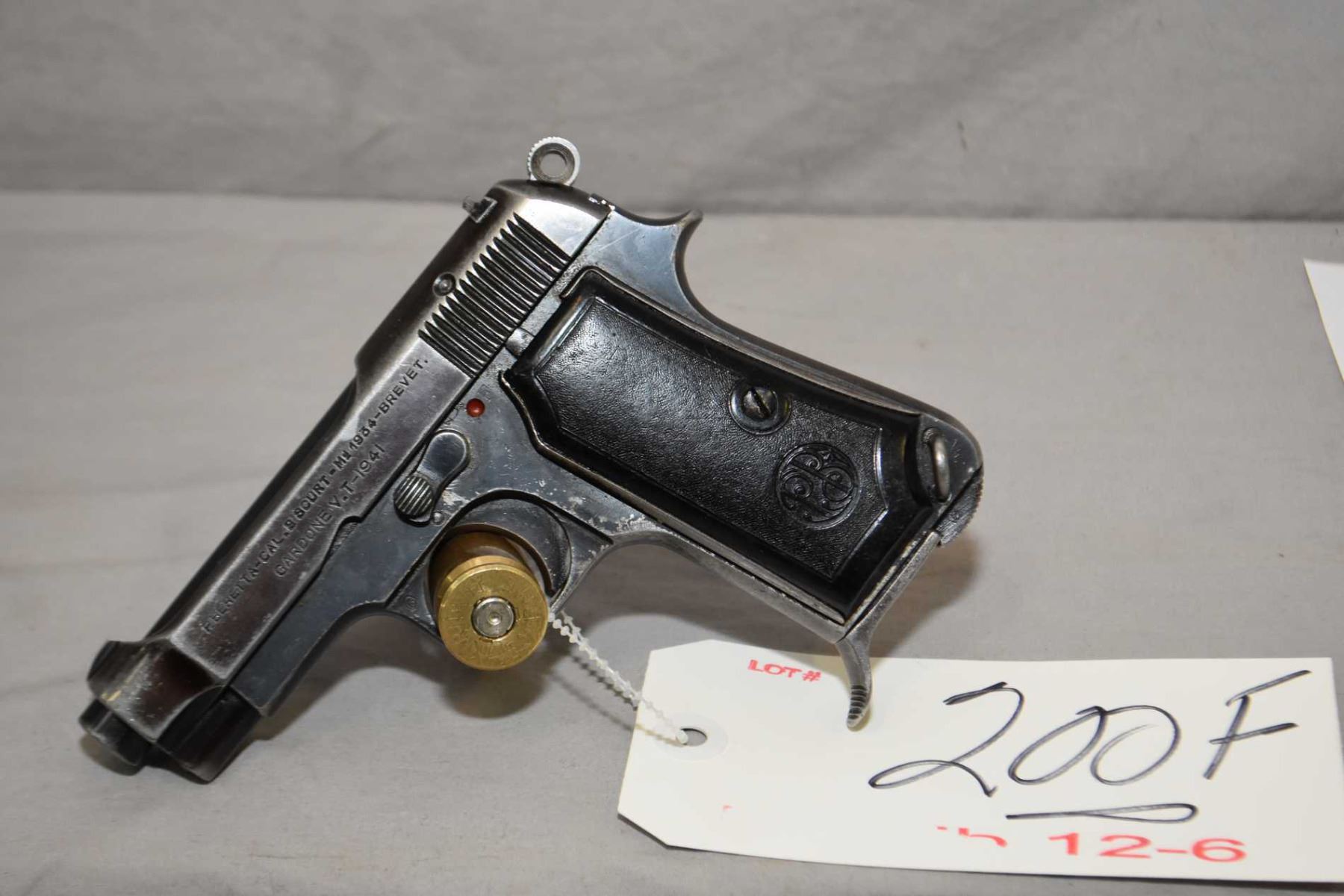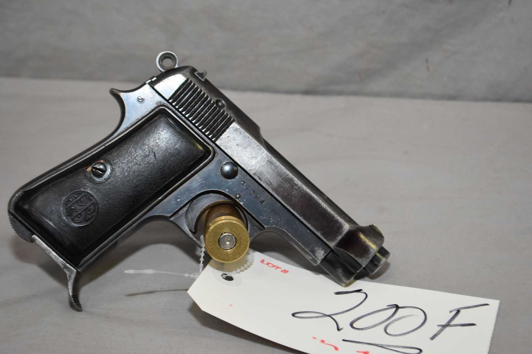 Prohib 12 - 6 Beretta Model 1934 .9 MM Browning Short Cal 7 Shot Semi Auto Pistol w/ 87 mm bbl [ fading blue finish, with some marks and scratches, holster wear etc., stamped 1941, PB black grips, fixed sights ] Ser # 39084 Prohib 12 -6 Cert # 7622029 FRT # 16550 - 3 EXPECT DELAYS IN TRANSFER