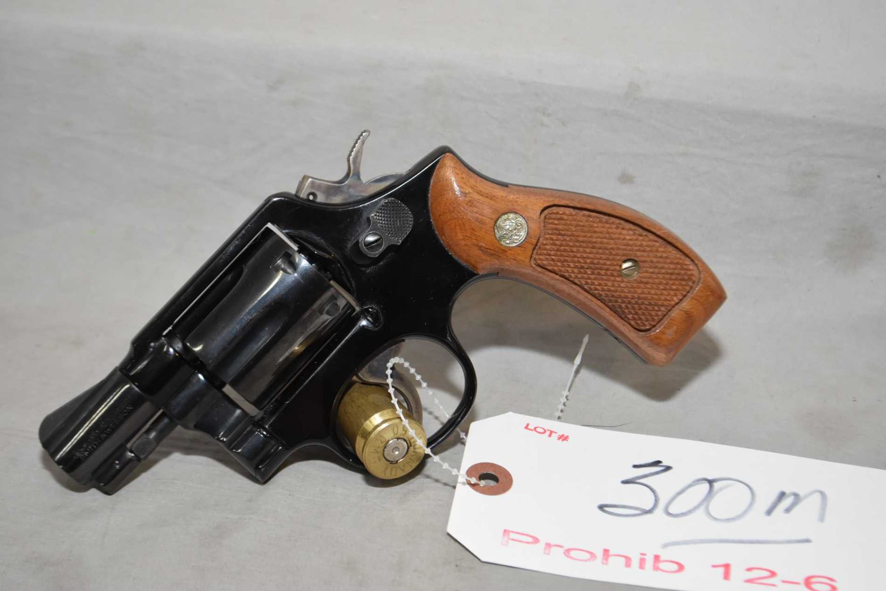 Prohib 12 - 6 Smith & Wesson Model 12 - 2 Airweight .38 Spec Cal 6 Shots Revolver w/ 51 mm bbl [ blued finish, faint cylinder ring and few slight marks to metal, fixed sights, case colored trigger and hammer, walnut checkered Smith & Wesson insignia grips ] Ser # D720964 Prohib 12 - 6 Cert # 18498921 FRT # 22583 - 1
