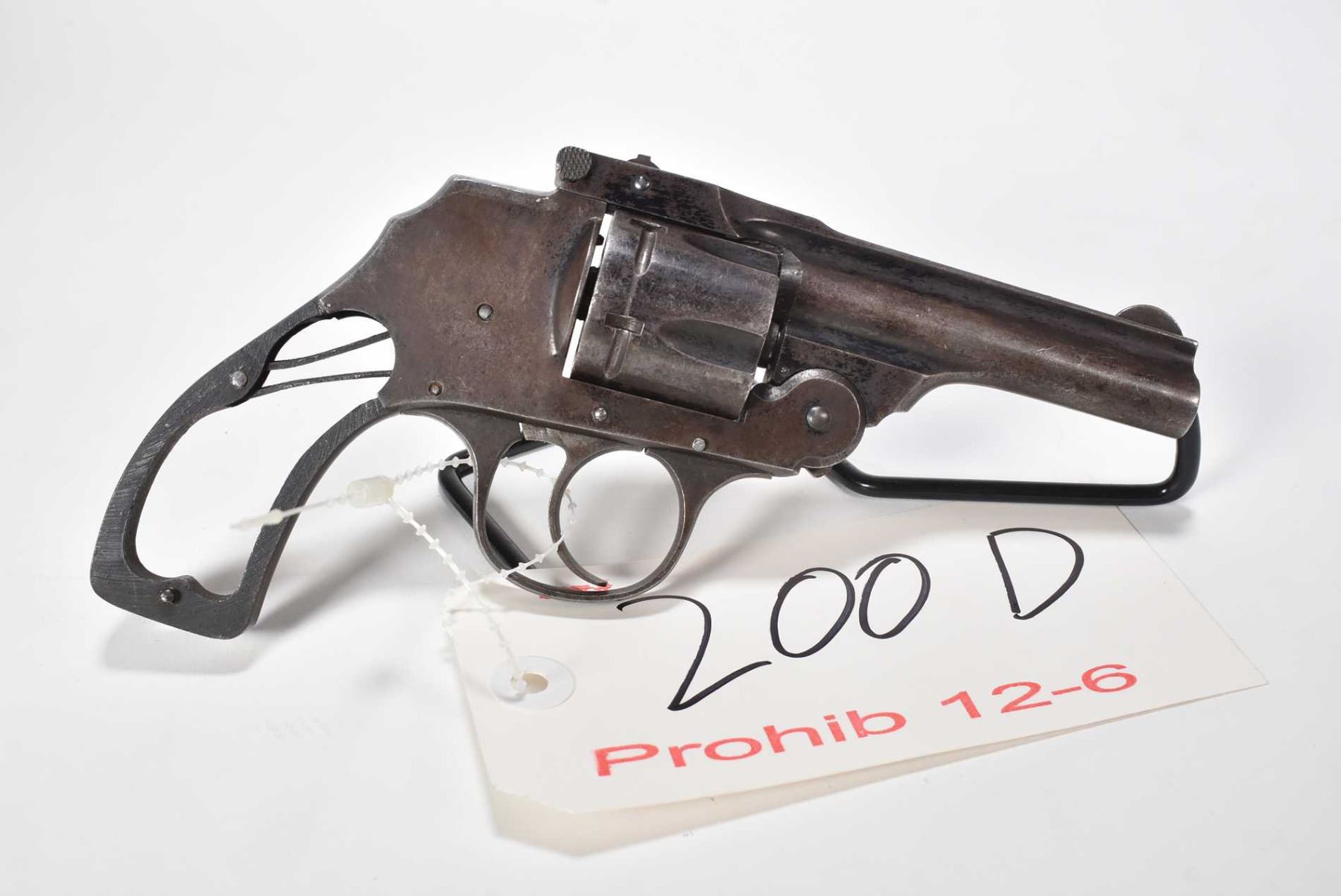 Prohib 12-6 handgun Hopkins & Allen model Forehand 1901, .38 S&W five shot hinge break, w/ bbl length 83mm [Blued finish turning brown grey, fixed front and rear sights, no grips. In overall well used condition and loose fittings] serial # A7774, certificate # 12012773, FRT # 24007-2 PAL required