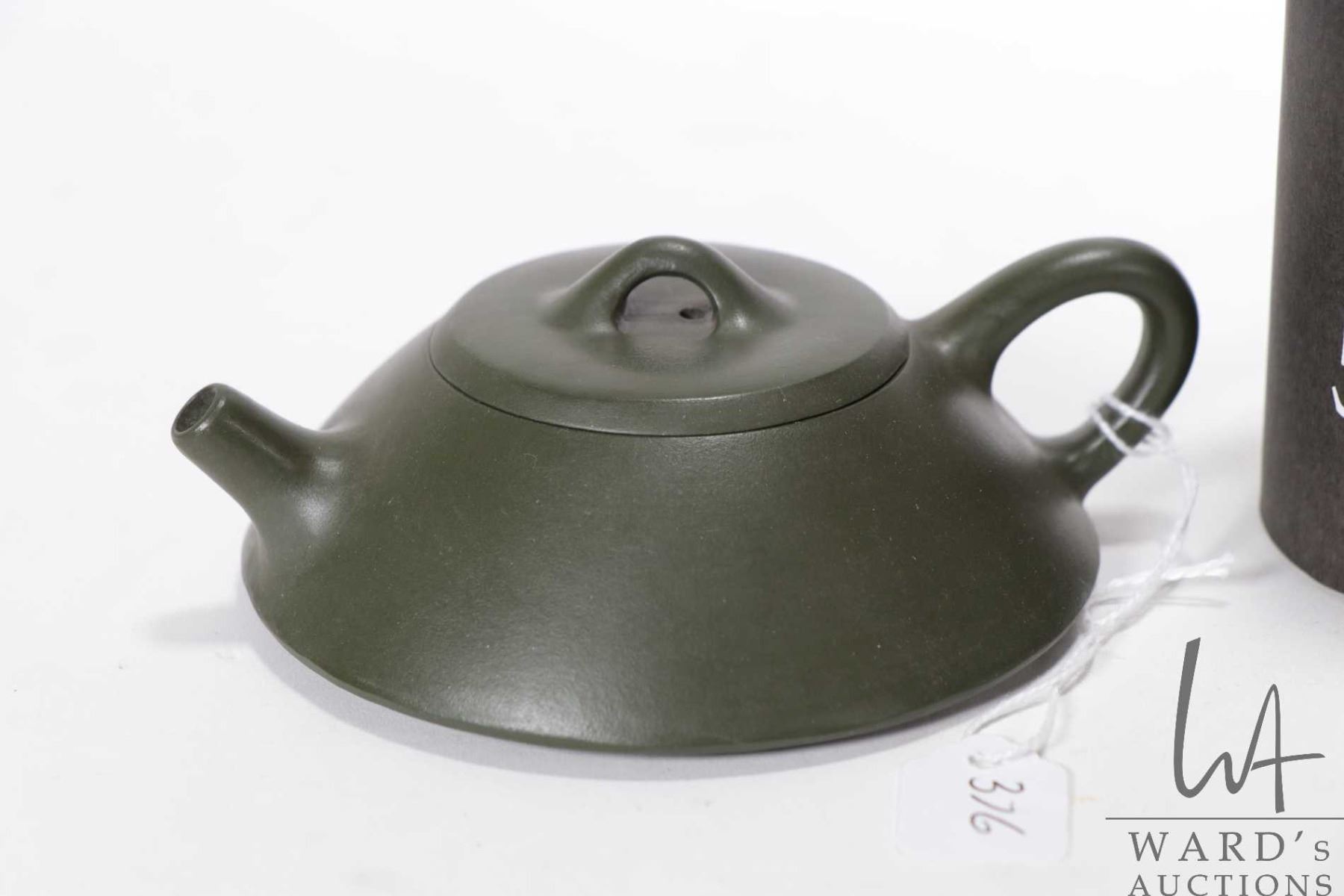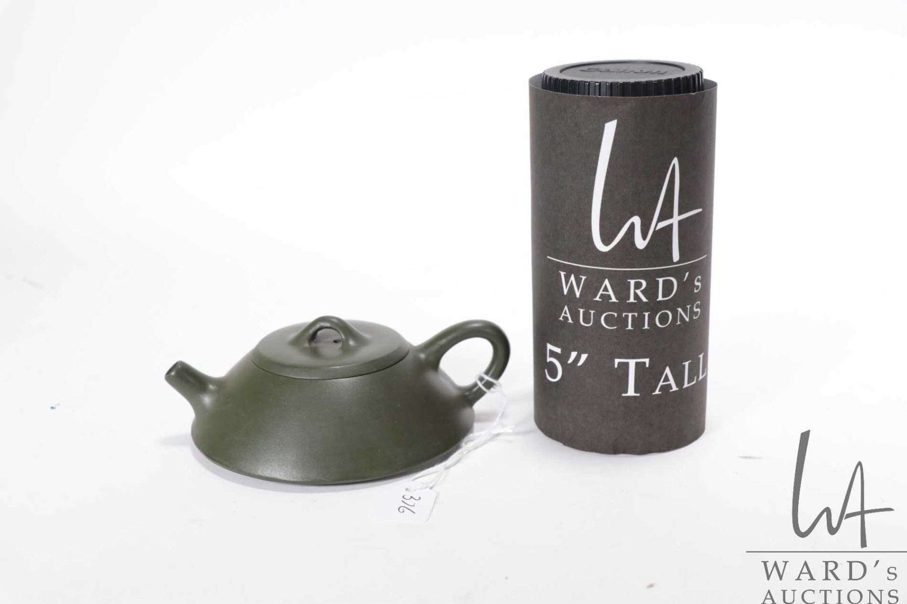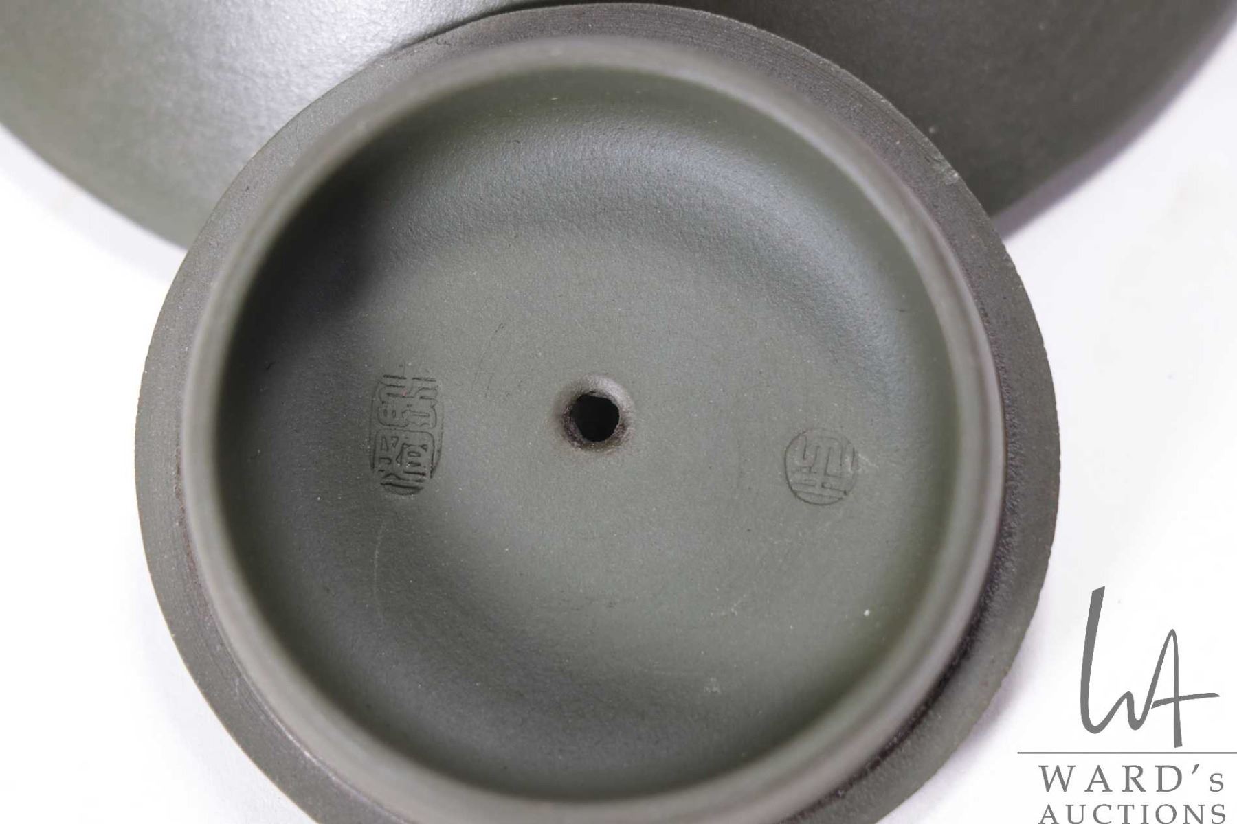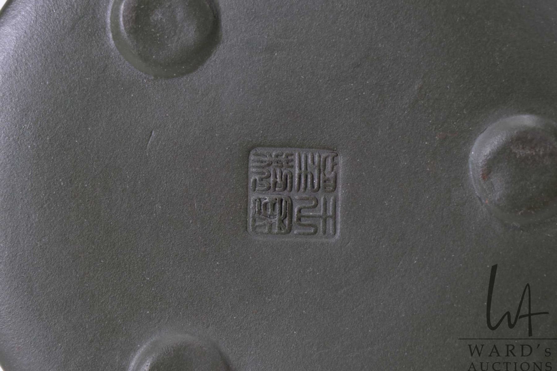 Purple clay signature teapot, purportedly 20th century, 1 1/2  in height X 4 1/2  in length