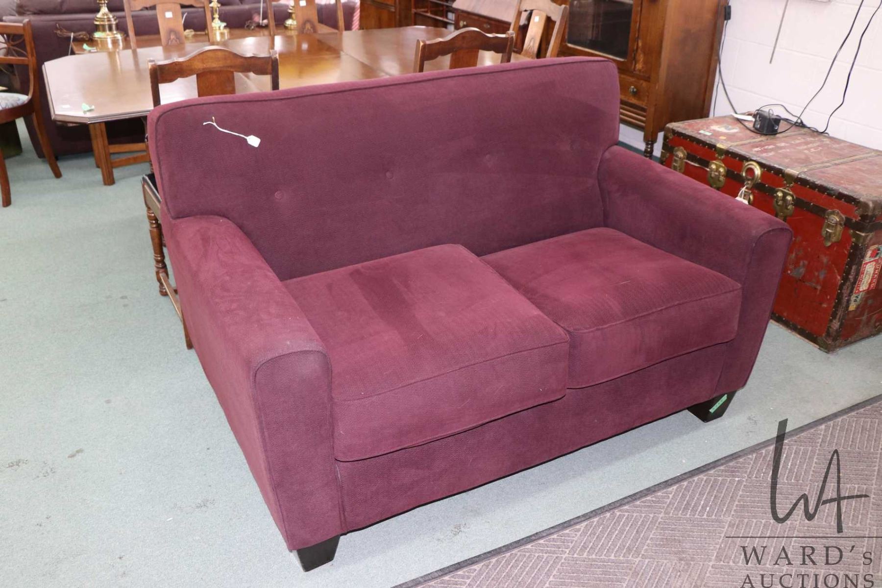Purple upholstered love seat