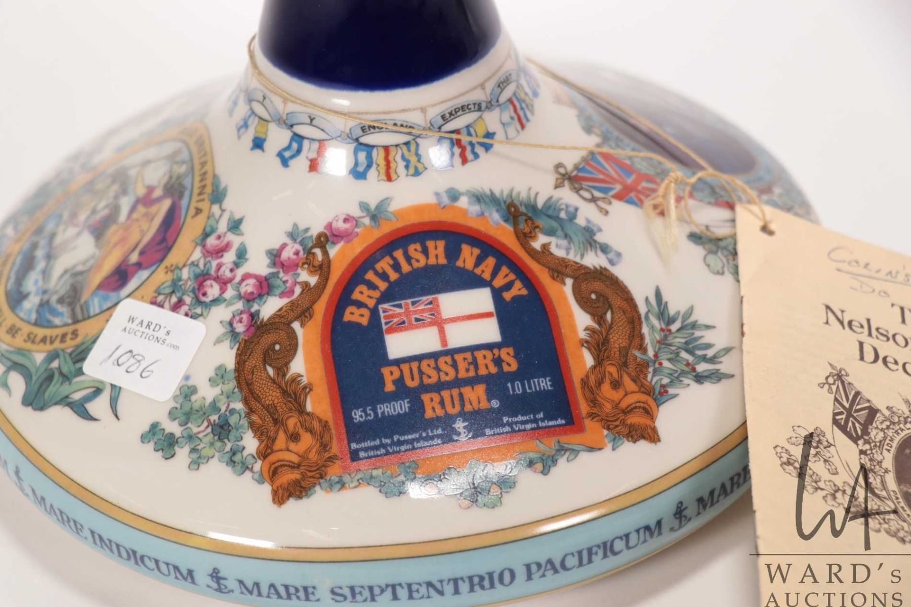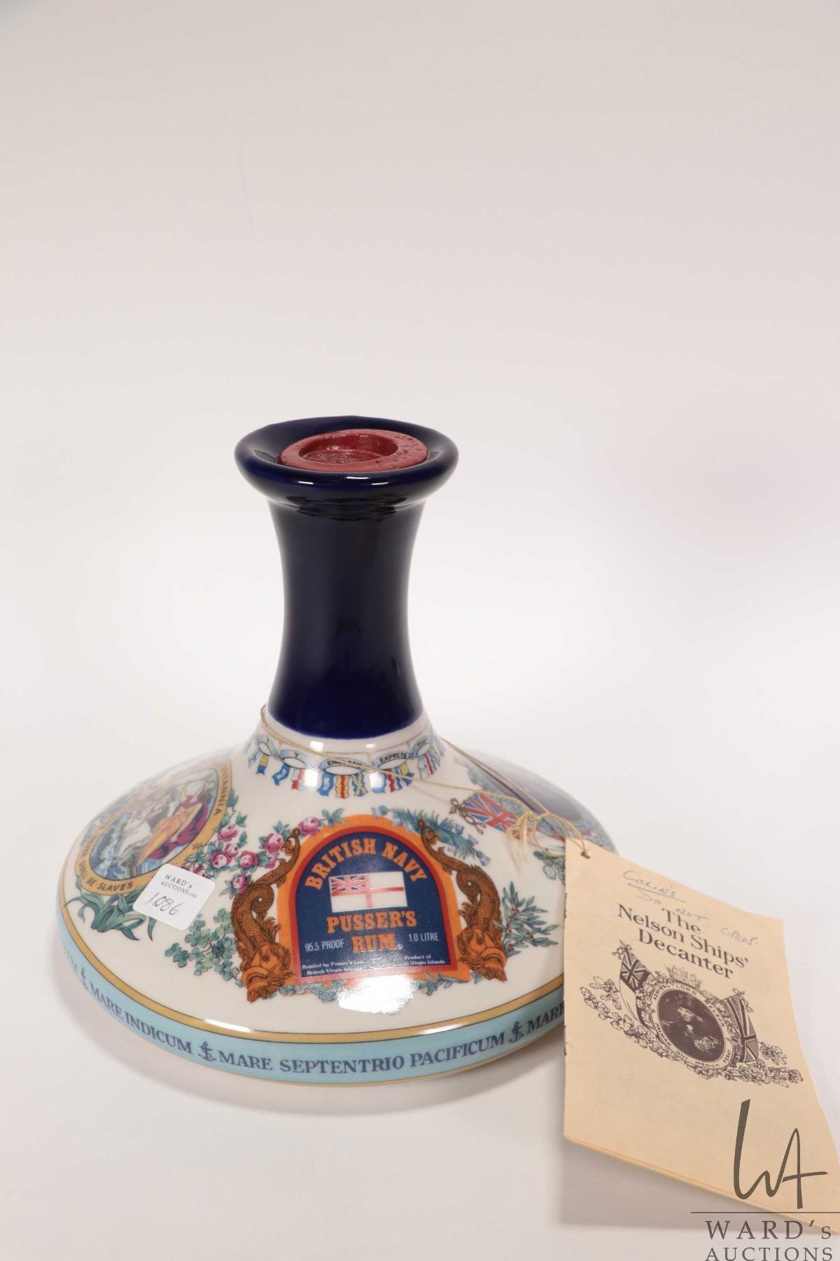 Pusser's British Navy Rum/ In collectible Lord Nelson Ships' Decanter/ 1 Ltr./ 95.5% proof/ 54.5% ABV/ note: missing decanter stopper Note: Alcohol cannot be insured by any courier in Canada. Local pick up is recommended. Canadian buyers only.