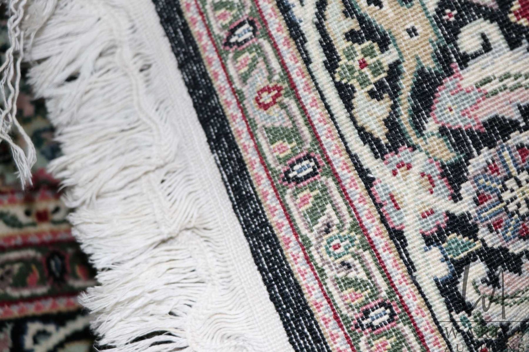 Quality fine weave wool area carpet with center medallion and delicately detailed floral design in c