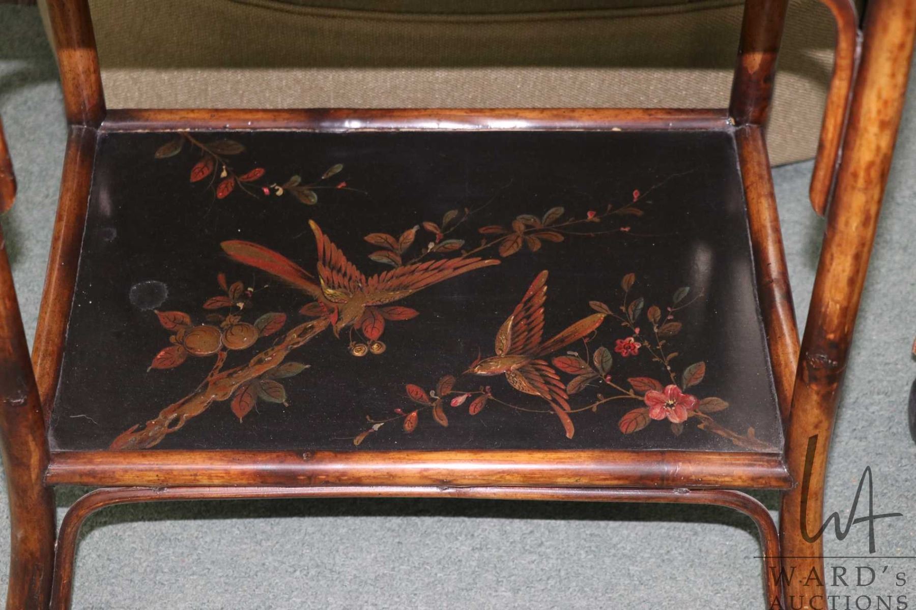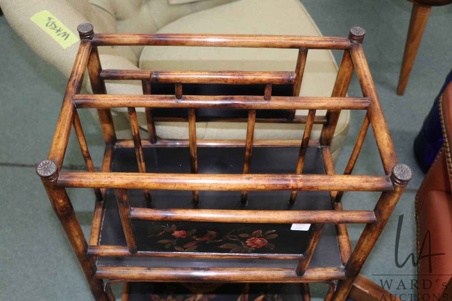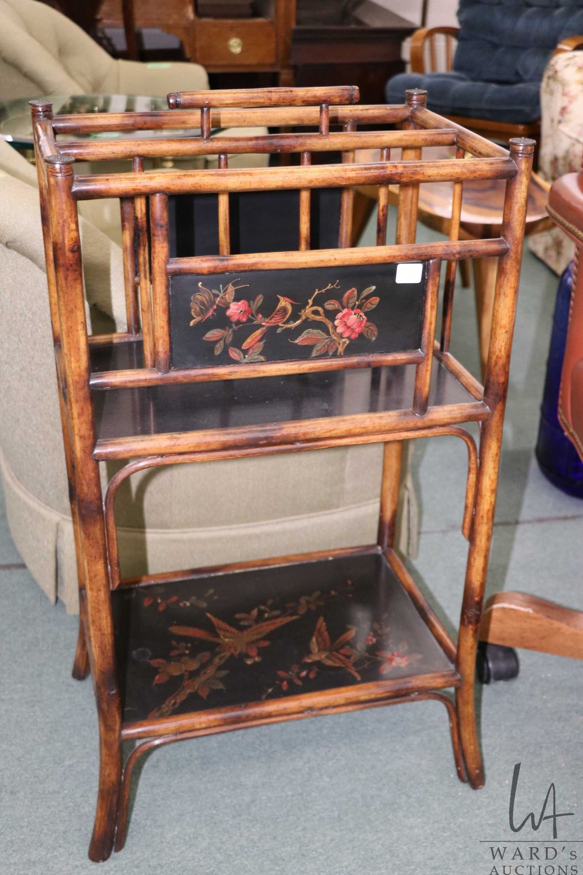 Quality modern reproduction of a Victorian Cantebury with hand painted Chinoserie birds and floral and bamboo frame, 32" H X 18" X 12"
