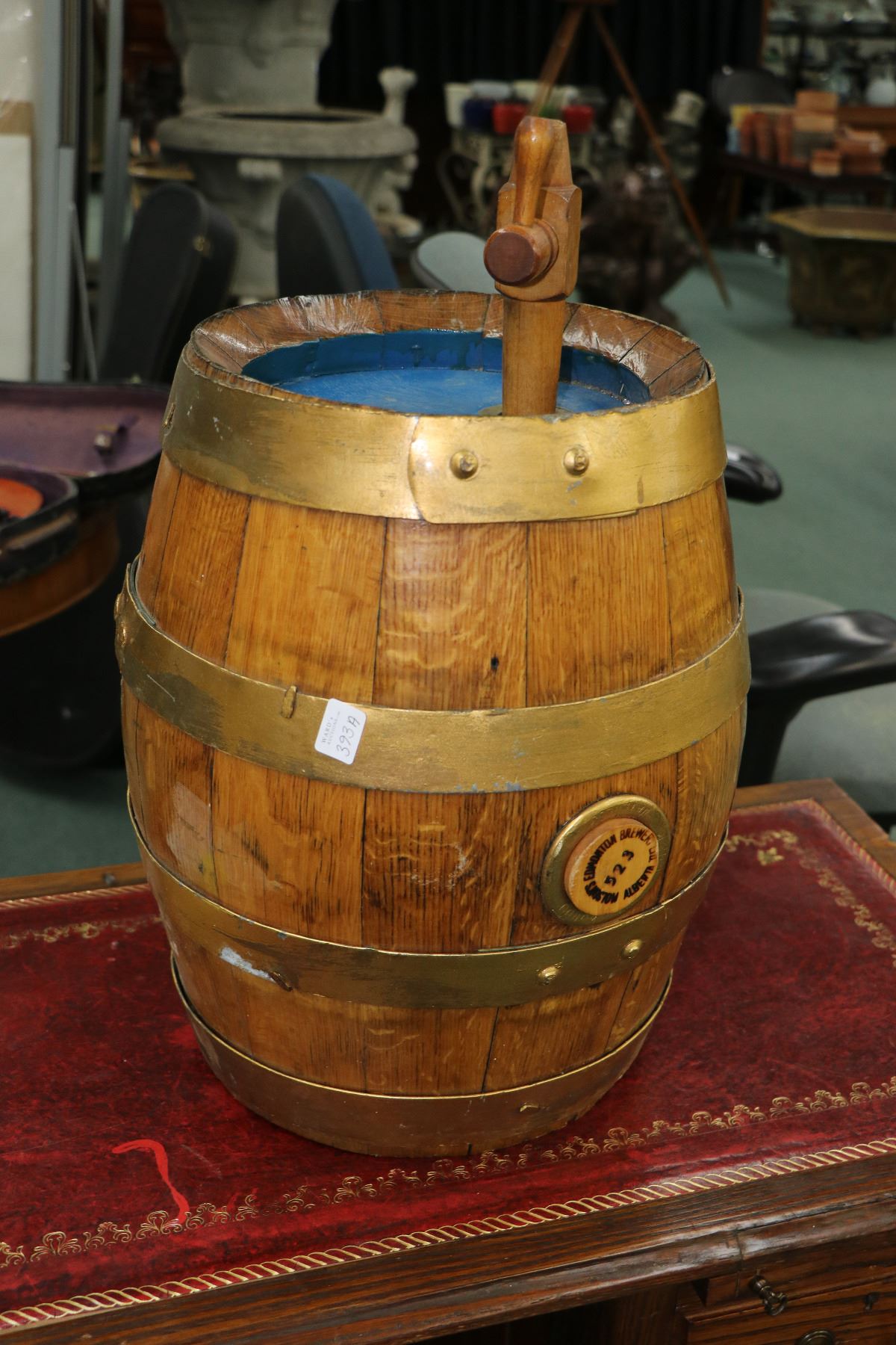 Quarter cut oak barrel with spigot 16" long