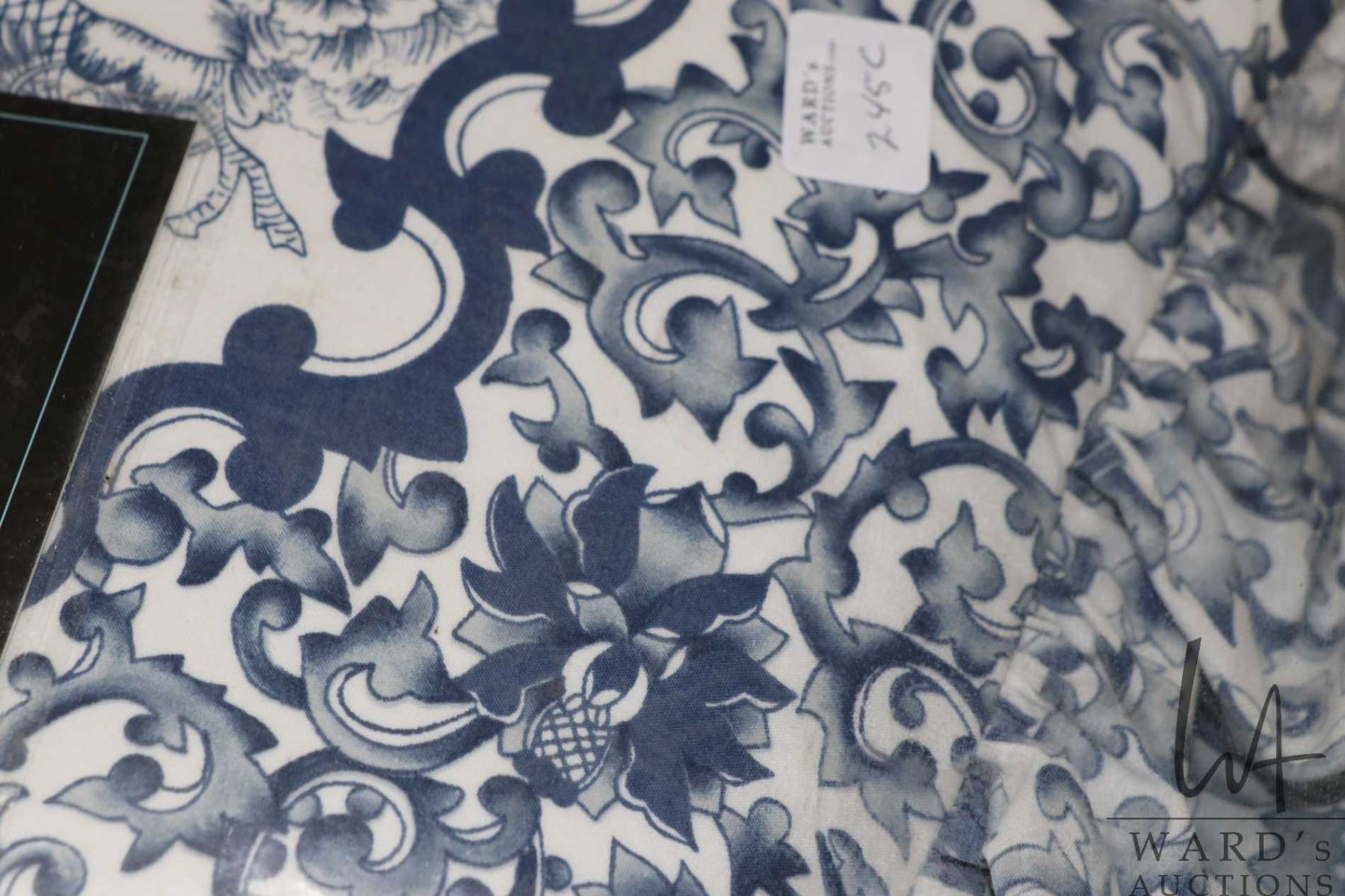 Queen size Ralph Lauren blue and white cotton comforter with matching bed skirt, pillow shams and tw