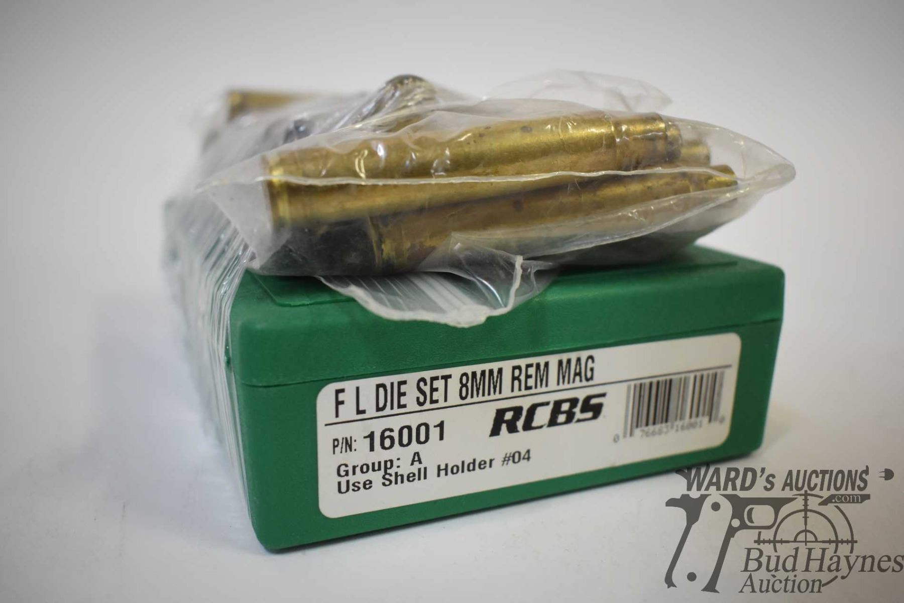 RCBS FL die set 8mm rem mag and a bag of 22 used RCBS FL die set 8mm rem mag and a bag of 22 used brass
