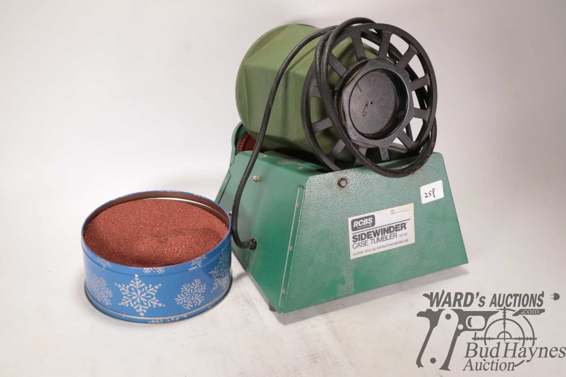 RCBS side winder case tumbler w/ variable speed RCBS side winder case tumbler w/ variable speed and tin of media. Working at time of cataloging