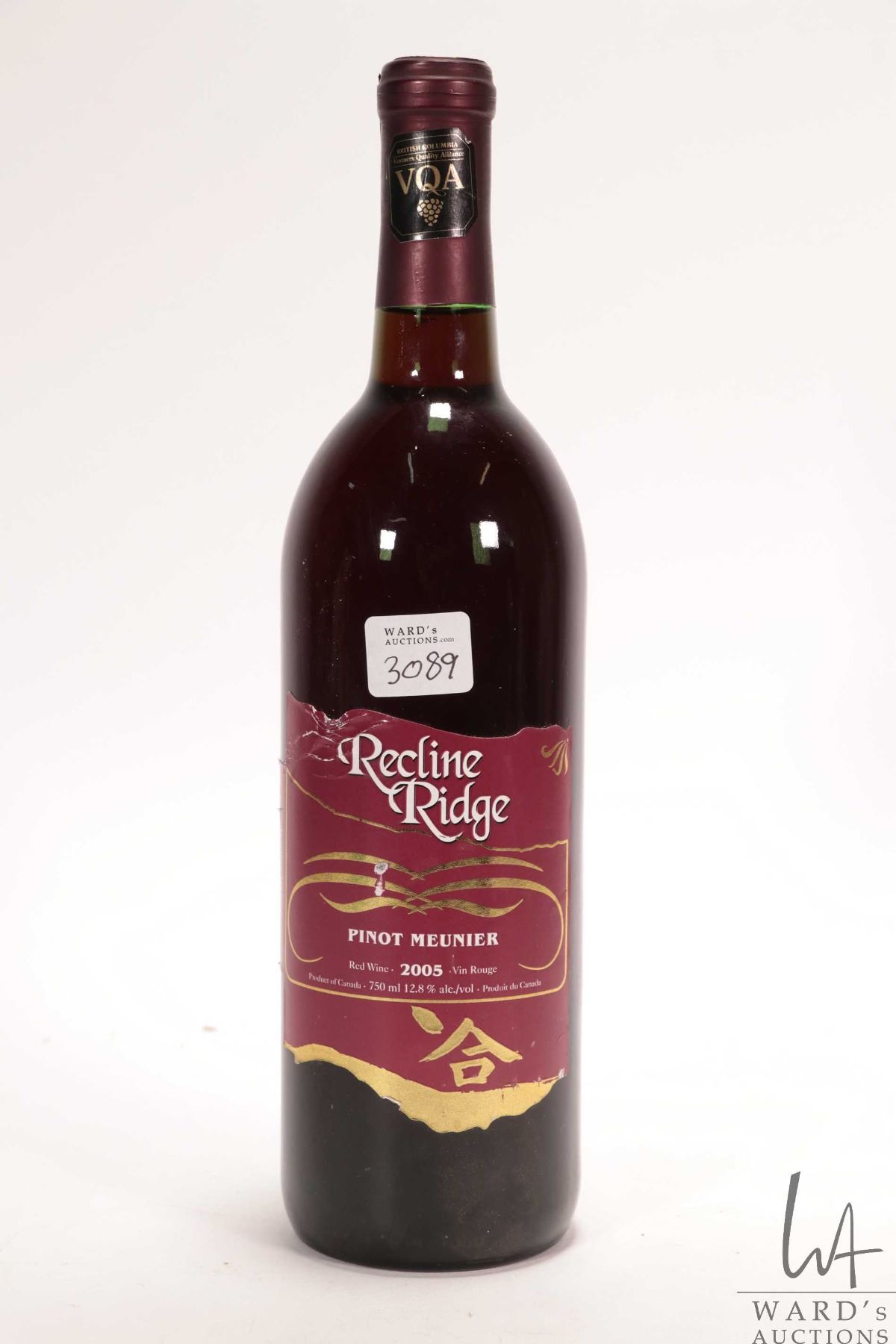Recline Ridge/ 2005 Pinot Meurnier/ 750ml/ 12.8% ABV Note: Alcohol cannot be insured by any courier in Canada. Local pick up is recommended. Canadian bidders only